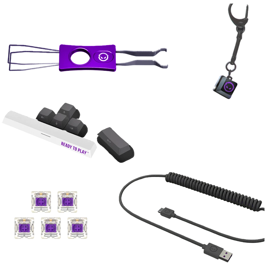 | Tarvikud kaasa arvatud | Quick Start Guide Brush Keychain Cup coaster Two hand warmers Carrying Bag Six replacement keycaps Five spare switches Switch/Keycap puller |