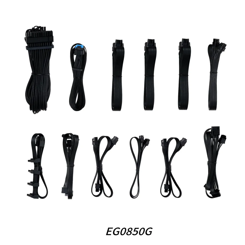 The PSU comes equipped with all cables featuring a braided texture. The 20+4pin, CPU, PCIe 6+2pin, and 12V-2×6 cables are designed with easy-to-adjust cable combs, ensuring very clean curves and cable runs for an aesthetically pleasing and organized dual chamber build.