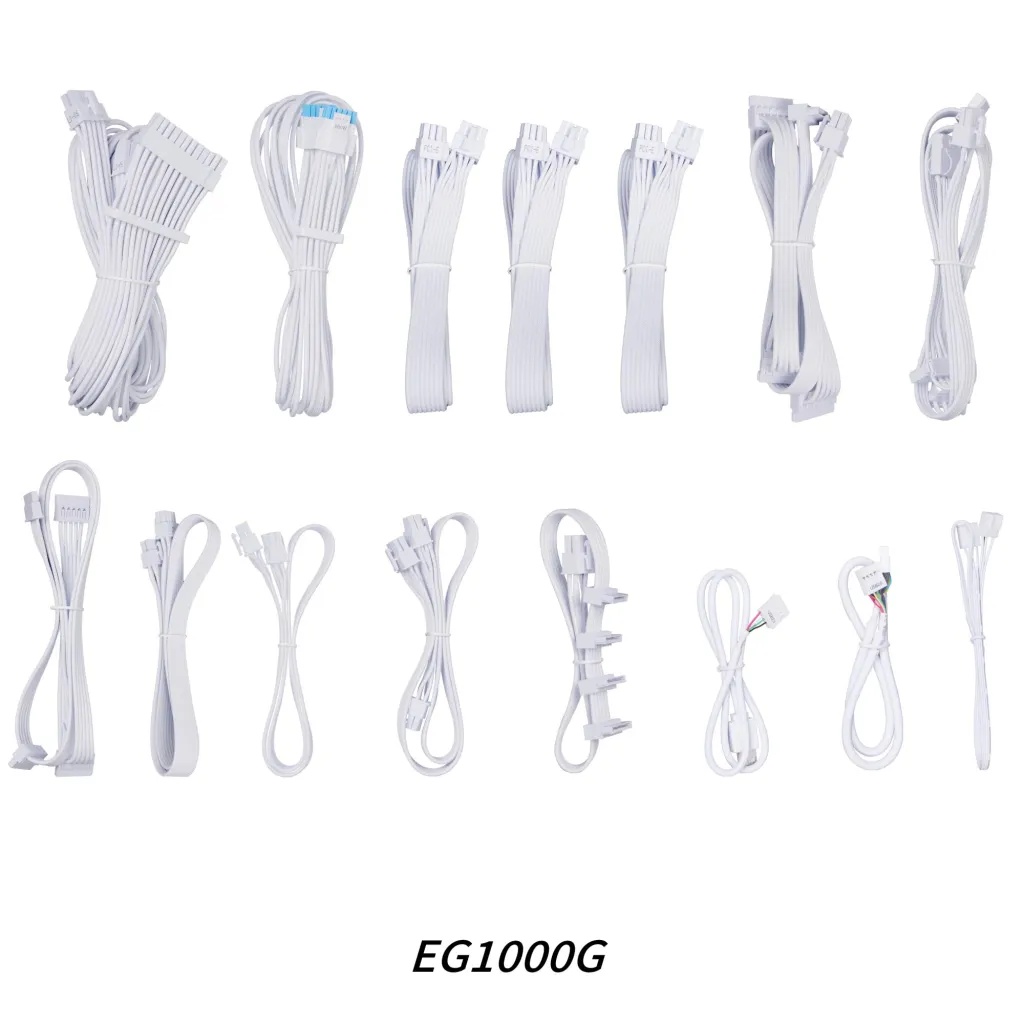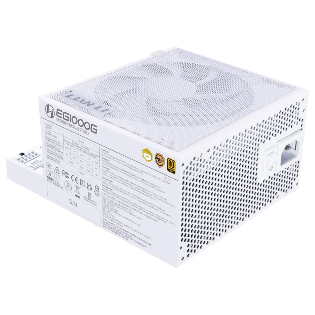 | Summary | Lian Li EG1000G. Total power: 1000 W, AC input voltage: 100 - 240 V, AC input frequency: 50/60 Hz. Motherboard power connector: 20+4 pin ATX, Motherboard power cable length: 50 cm, SATA power cable length: 300,400 mm. Purpose: PC, Power supply unit (PSU) form factor: ATX, 80 PLUS certification: 80 PLUS Platinum. Product colour: White, Fan diameter: 12 cm. Cables included: CPU, PCIe, Peripheral (Molex), SATA |