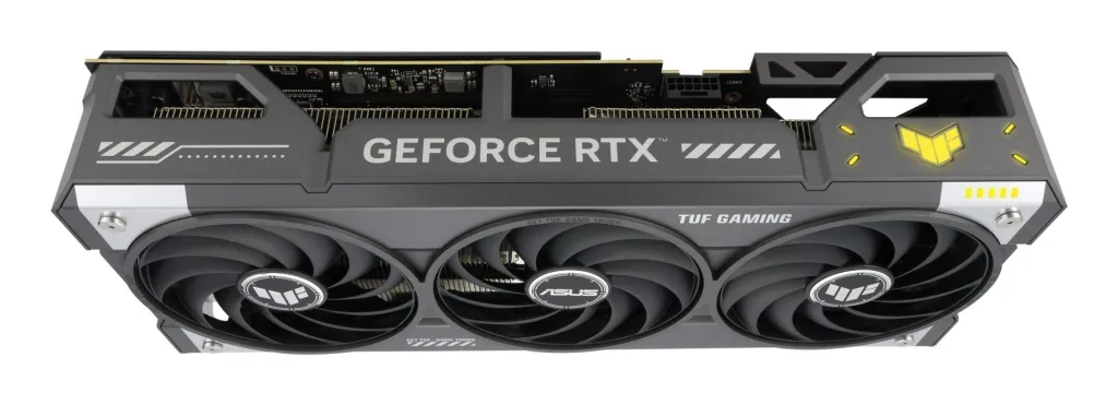 The two outer fans spin counterclockwise to reduce turbulence and enhance air dispersion. All three fans stop when GPU temps are below 50°C, for quieter operation during light tasks. They restart above 55°C, following a speed curve that balances performance and acoustics.