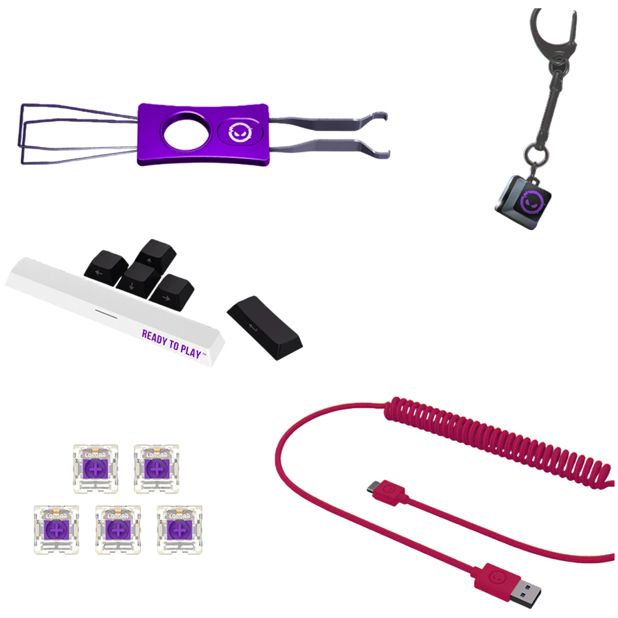 | Tarvikud kaasa arvatud | Quick Start Guide Brush Keychain Cup coaster Two hand warmers Carrying Bag Six replacement keycaps Five spare switches Switch/Keycap puller |