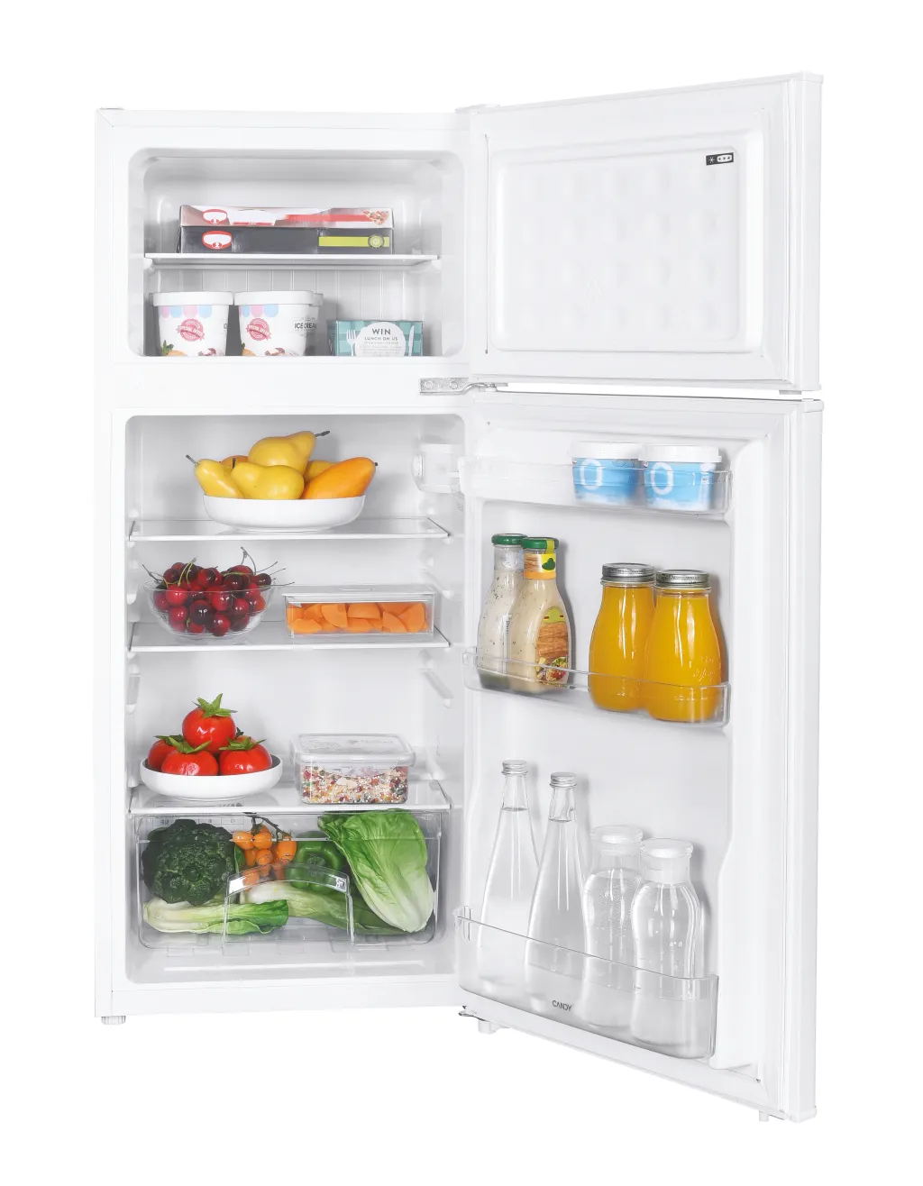 Candy CDH1S313EW. Neto kogumahutavus: 117 l. Ukse hing: Parem. Müratase: 40 dB. Külmkapi netomahutavus: 89 l, Külmkapi sisemuse valgustus, Külmkapi riiulite/korvide arv: 2, Aedviljasahtlite arv: 1. Sügavkülmiku netomahutavus: 28 l, Külmutusvõimsus: 2,4 kg/24 h. Energiatõhususe klass: E, Aastane energiakulu: 165 kWh. Toote värv: Valge