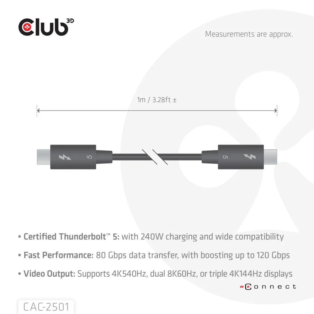 CLUB3D CAC-2501. Pistmik 1: Sisestatav konnektor, Pistmik 2: Sisestatav konnektor, Kaabli pikkus: 1 m