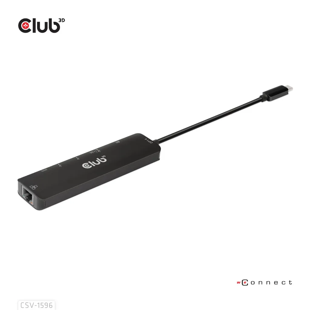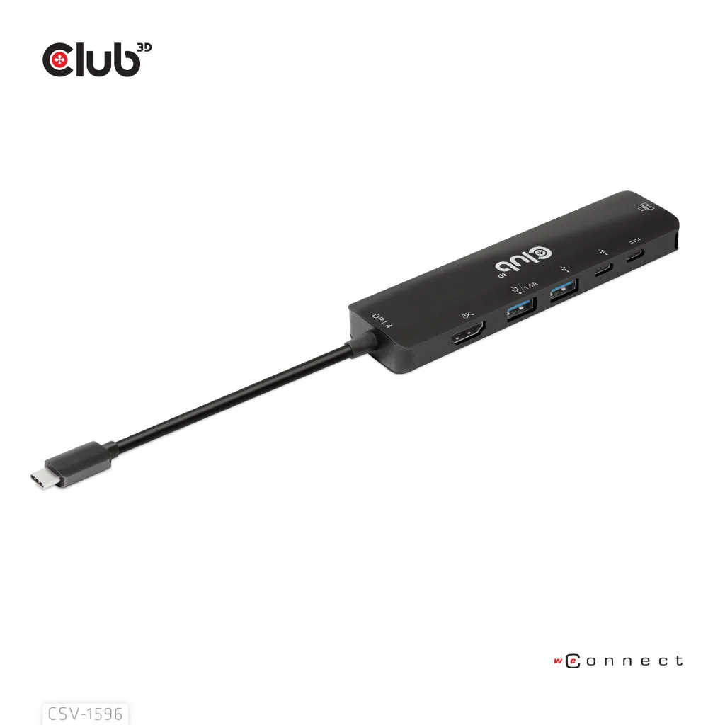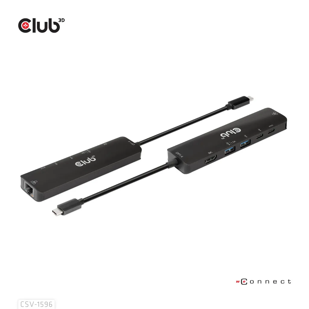 CLUB3D CSV-1596. Hostiliides: USB 3.2 Gen 1 (3.1 Gen 1) Type-C, USB Power Delivery kuni: 100 W, HDCP versioon: 1.4/2.3. Ethernet LAN-i andmeedastuskiirused: 100,1000 Mbit/s. Toote värv: Must, HD tüüp: 8K Ultra HD, Maksimaalne värskendussagedus: 120 Hz. Väljundpinge: 5 V, Väljundvool: 1,5 A, Elektritarbimine (max): 7,5 W. Laius: 126 mm, Sügavus: 32 mm, Kõrgus: 35 mm