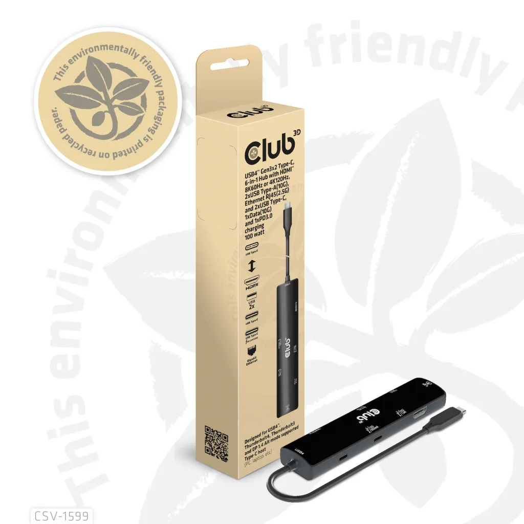 CLUB3D CSV-1599. Hostiliides: USB 3.2 Gen 1 (3.1 Gen 1) Type-C, USB Power Delivery kuni: 100 W, HDCP versioon: 1.4/2.3. Ethernet LAN-i andmeedastuskiirused: 10,100,1000 Mbit/s. Toote värv: Must, Maksimaalne värskendussagedus: 120 Hz, Jaoturi liidesed: HDMI, RJ-45, USB 3.2 Gen 1 (3.1 Gen 1) Type-A, USB 3.2 Gen 1 (3.1 Gen 1) Type-C. Toite tüüp: USB. Laius: 147 mm, Sügavus: 31 mm, Kõrgus: 18 mm