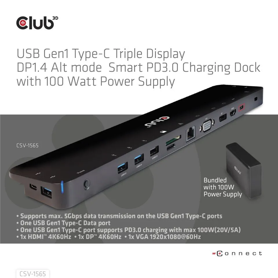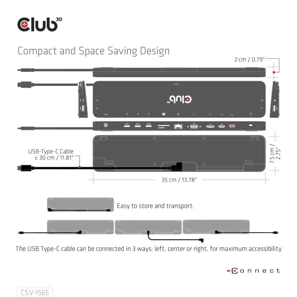 CLUB3D CSV-1565. Ühenduvustehnoloogia: Dokkimine, Hostiliides: USB 3.2 Gen 1 (3.1 Gen 1) Type-C. Toote värv: Must