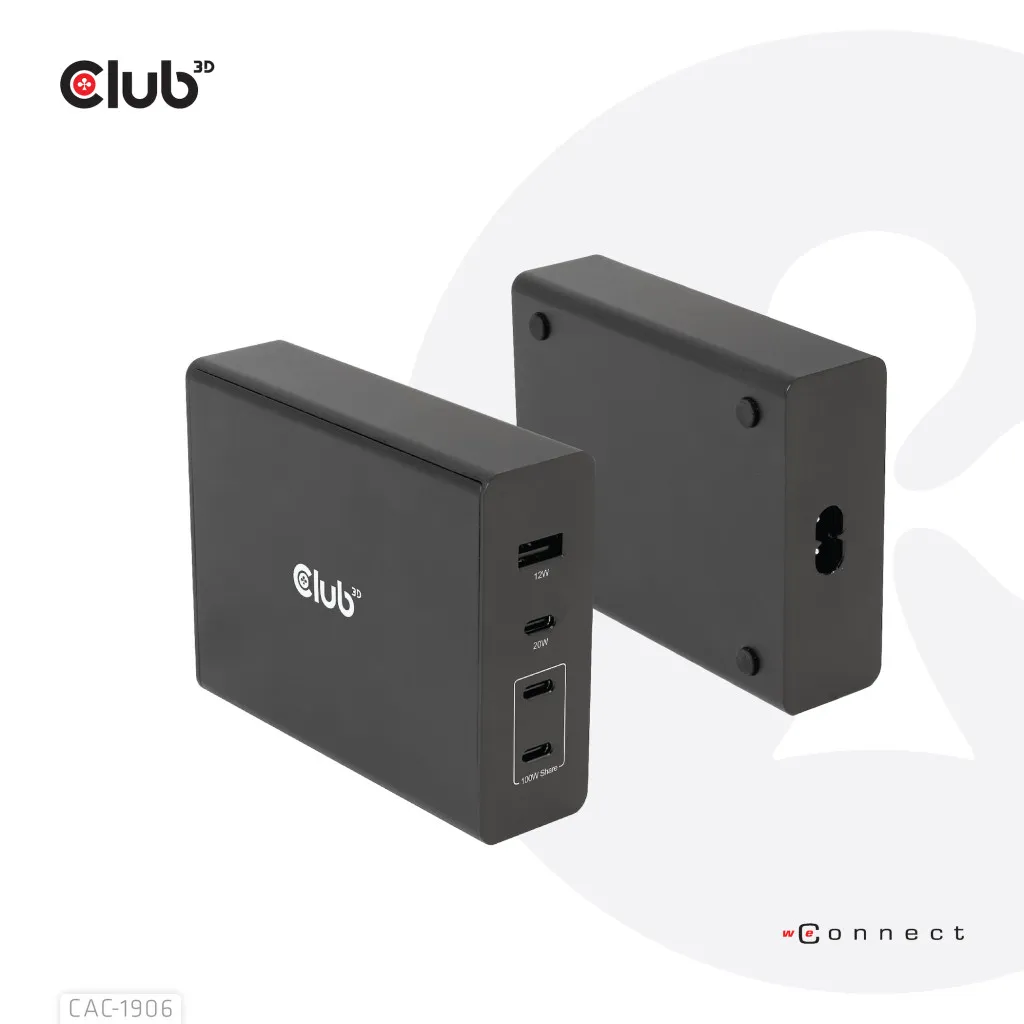 CLUB3D CAC-1906. Laadija tüüp: Hoonesisene, Toiteallika tüüp: DC (alalisvool), Laadija ühilduvus: Universaalne. Sisendpinge: 100 - 240 V. USB C-tüüpi portide arv: 3, Toite kaitsefunktsioonid: Ülekoormus, Lühis. Toote värv: Must
