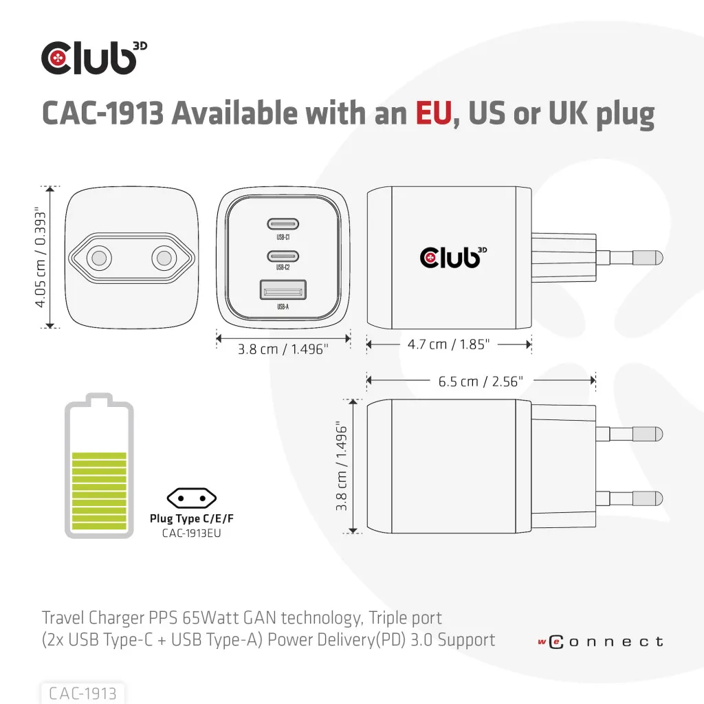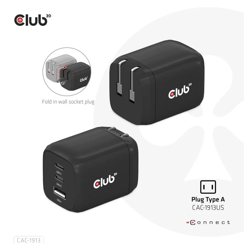CLUB3D CAC-1913EU Travel Charger 65W GaN