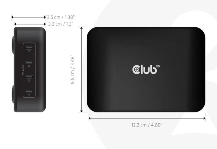 CLUB3D CAC-1918. Toiteallika tüüp: Vahelduvvool, Laadija ühilduvus: Universaalne. Sisendpinge: 100-240 V. USB C-tüüpi portide arv: 4, Toite kaitsefunktsioonid: Ülevool, Ülepinge, Ülekütmine, Ülekoormus, Lühis. Toote värv: Must