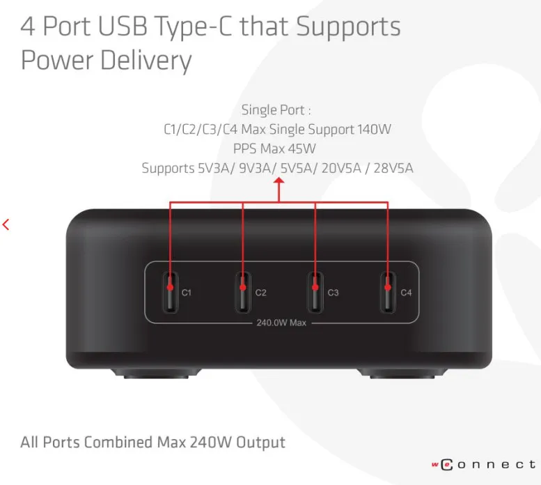 | USB Power Delivery kuni | 240 W |