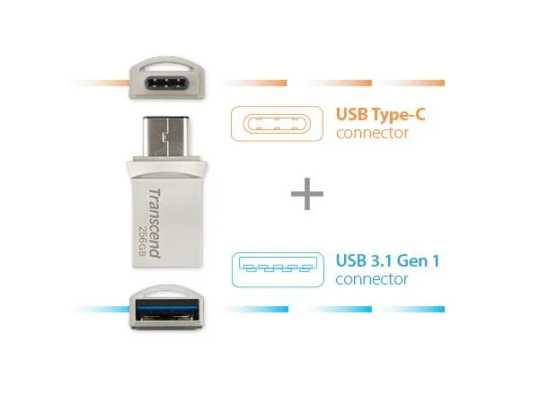 Thanks to the USB OTG (On-The-Go) technology, the JetFlash 890 combines a regular USB 3.1 (Gen 1) connector and a USB Type-C connector into a USB flash drive, providing you greater portability to transfer precious photos, music, videos and any other digital files between tablets, smartphones, Mac computers, PCs and laptops.