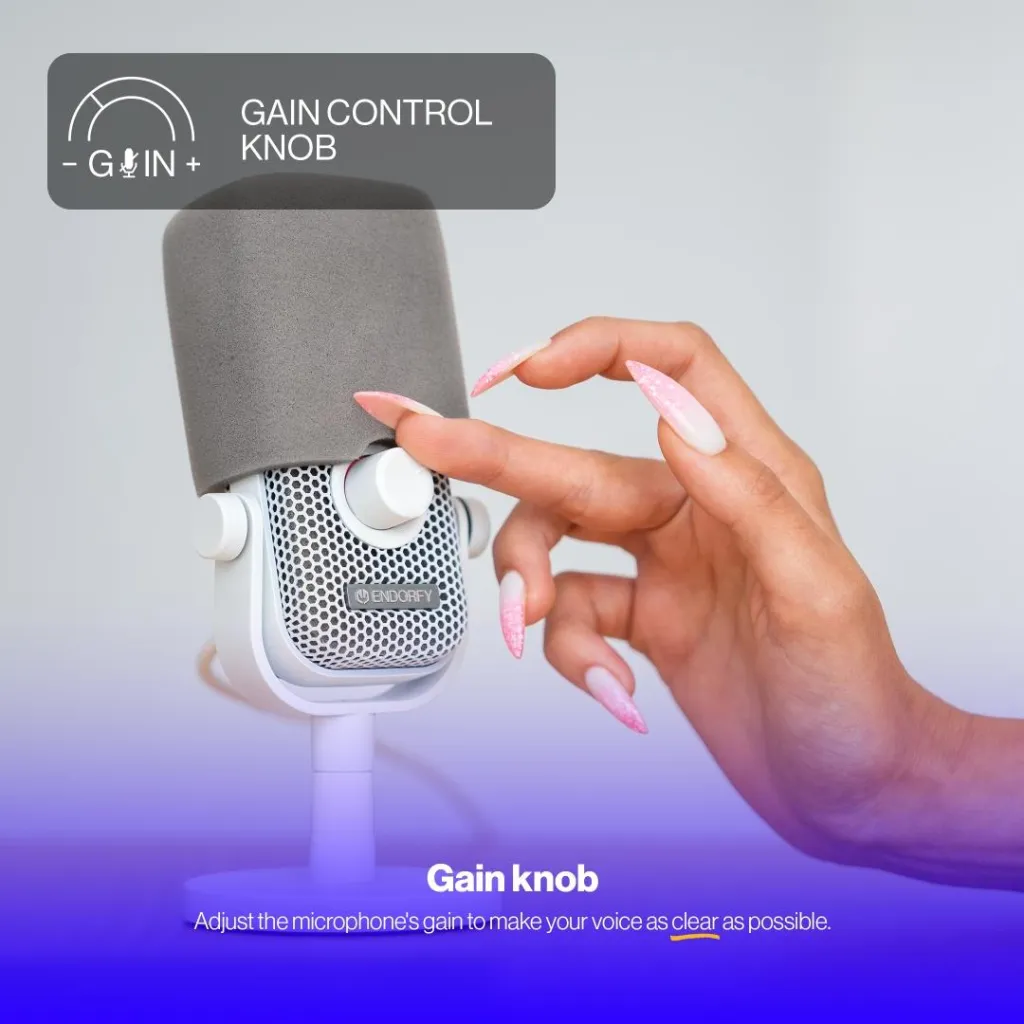 A GAIN knob lets you control microphone’s sensitivity. To reduce explosive consonants and other unwanted sounds, Solum Voice S Onyx White is also equipped with two foam filters – an internal one and one applied directly to the microphone (which is unique, considering its shape!).