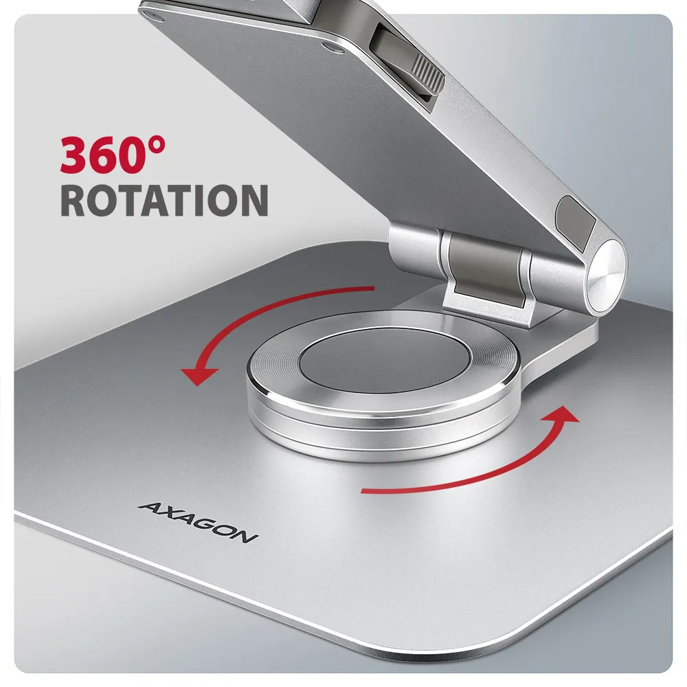 AXAGON STND-LR is a stand with 360° rotation, double hinge and extendable arm that provides maximum comfort and significantly improves ergonomics when working with a laptop or tablet. Designed for devices from 10" to 17.3", it allows you to adjust the ideal height and angle to relax your neck and back muscles. Thanks to its 360° mechanism and extendable arm, it adapts perfectly to your needs whether you are working at home, in the office or on the move. The compact and portable design of the stand ensures a comfortable working environment anywhere.