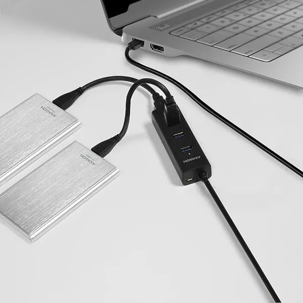 • USB 3.0 hub with a permanently connected 120 cm long cable,