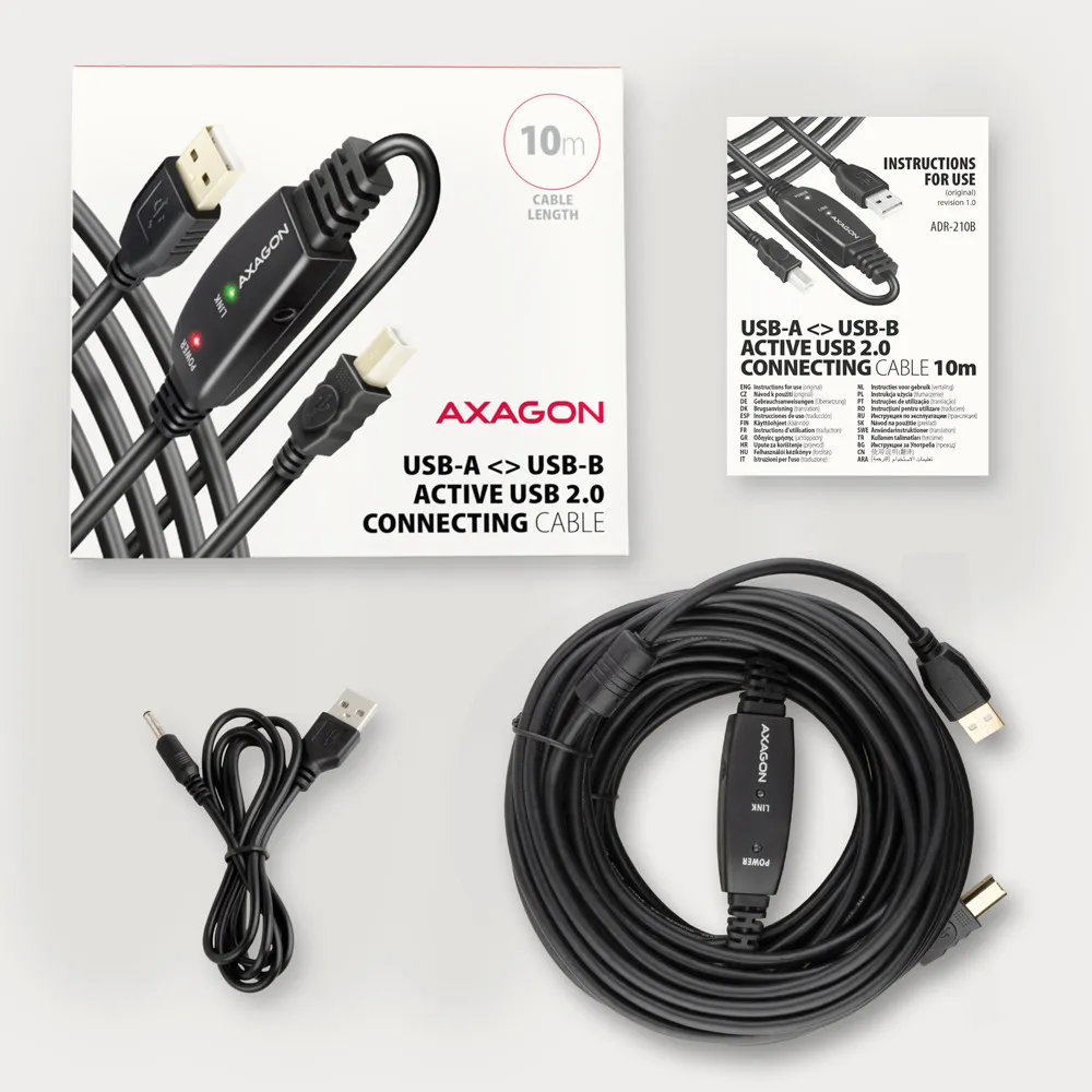Active connection USB 2.0 A-M > B-M cable, 10 m long. Power supply option.