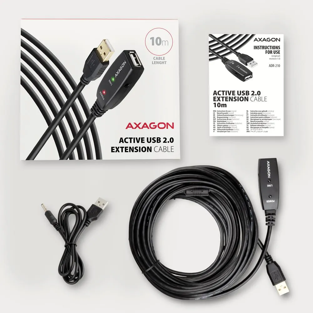 Active extension USB 2.0 A-M > A-F cable, 10 m long. Power supply option.