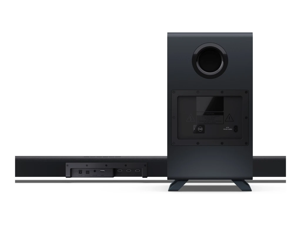 Wireless subwoofer delivers a cinema-style experience without the hassle of wires; USB playback compatible with: MP3/OGG/WAV/FLAC/AAC+/M4A (drives up to 64GB supported); Equaliser with 6 pre-sets (inc. night mode) + custom bass & treble adjustment; 4K pass-through with 2 HDMI inputs to expand your TVs connectivity