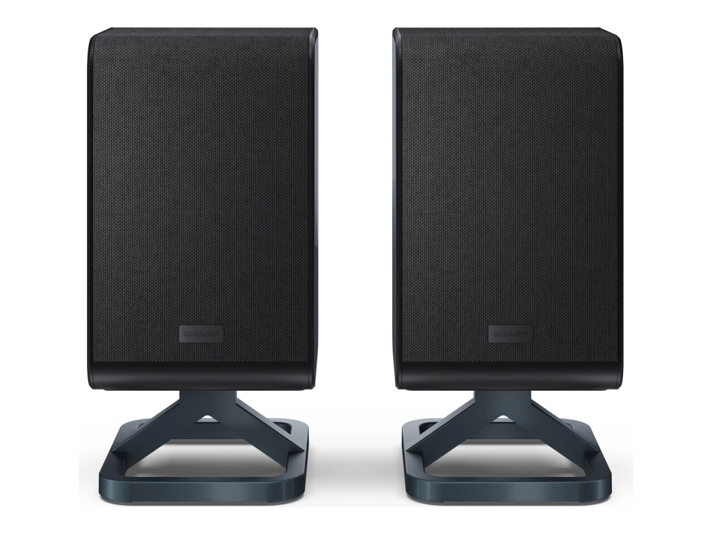 Upfiring speaker drivers reflect sound from the ceiling adding height to the sound stage; Simple and quick wireless connection directly to Sharp “Q” soundbars; Wall mount or table top positioning
