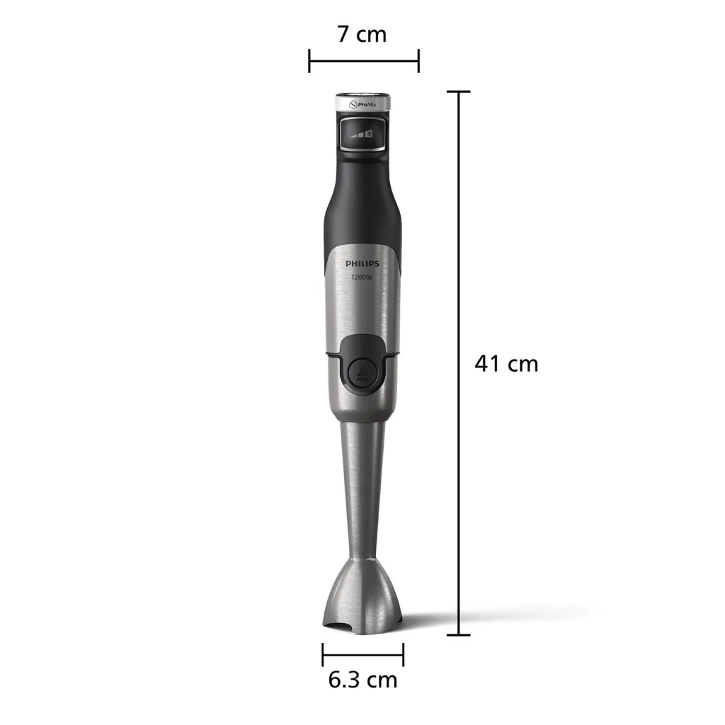 | Summary | Philips 5000 series HR2684/00 Hand Blender. Type: Immersion blender, Product colour: Stainless steel, Black, Cord length: 1.2 m. Rotational speed (max): 15000 RPM, Speed control type: Stepless, Control type: Buttons. Blending bowl material: Styrene Acrylonitrile (SAN), Housing material: Plastic, Blade material: Stainless steel. Power: 1200 W, Power source: AC, AC input voltage: 230 V. Width: 62 mm, Depth: 72 mm, Height: 409 mm |