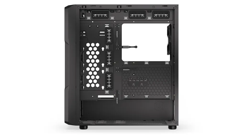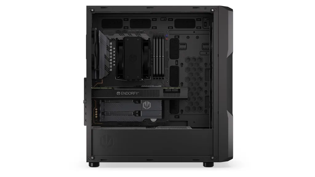 The Regnum’s vast indoors allows you to install up to 4 disks — either 2× 2.5” and 2× 3.5”, or 4× 2.5”. It also accommodates even E-ATX motherboards, a 275 mm long PSU, and a GPU up to 370 mm. With enough room left to swing a cat!