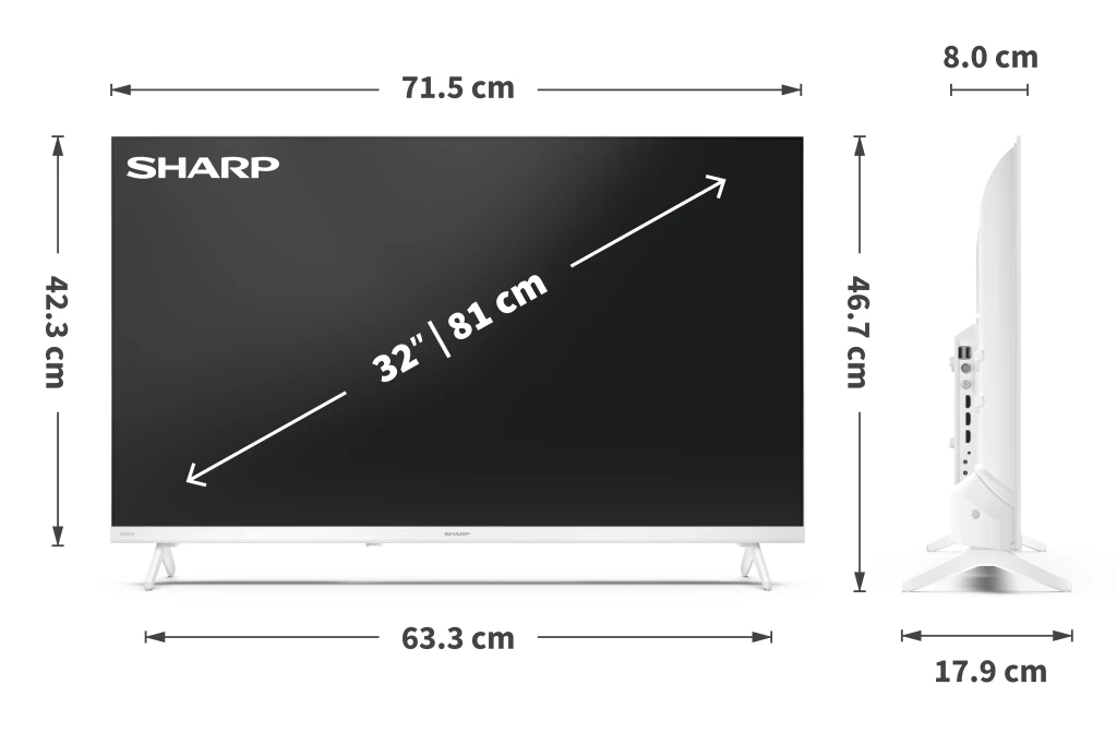 Dimensions with stand | 71.5 x 46.7 x 17.9 |