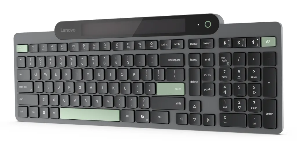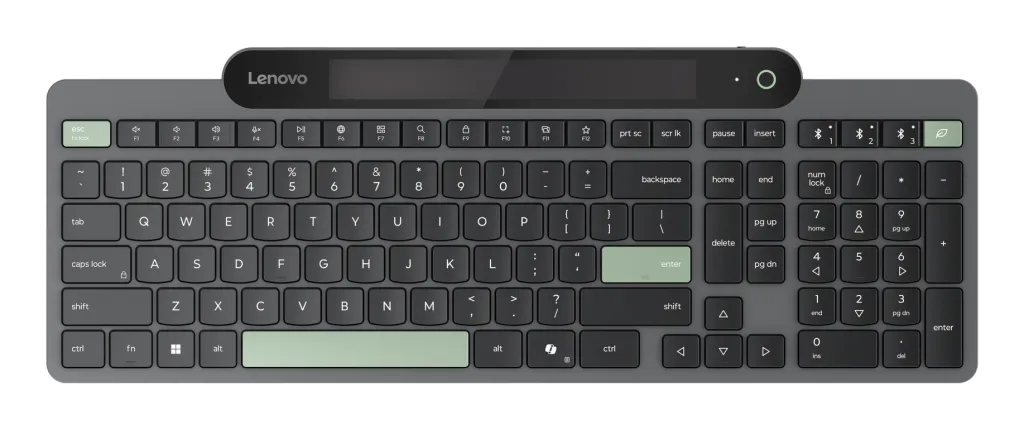 Lenovo 4Y41R69495. Klaviatuuri kujutegur: Täissuuruses (100%), Ühenduvustehnoloogia: Juhtmevaba, Seadme liides: Bluetooth, Klaviatuuri klahvilüliti: Plunger key switch, Klaviatuuri klahvide arv: 109, Soovituslik kasutus: Kodu/kontor. Toote värv: Must, Roheline