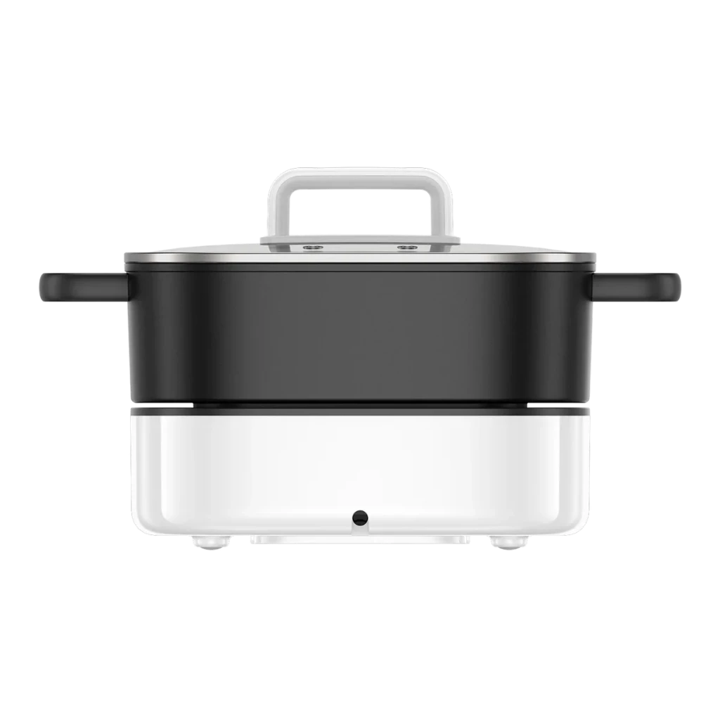6-level granular heat adjustment options; Non-slip pads; Dry-burn protection; Anti-scald, comfortable handle; Tempered glass lid