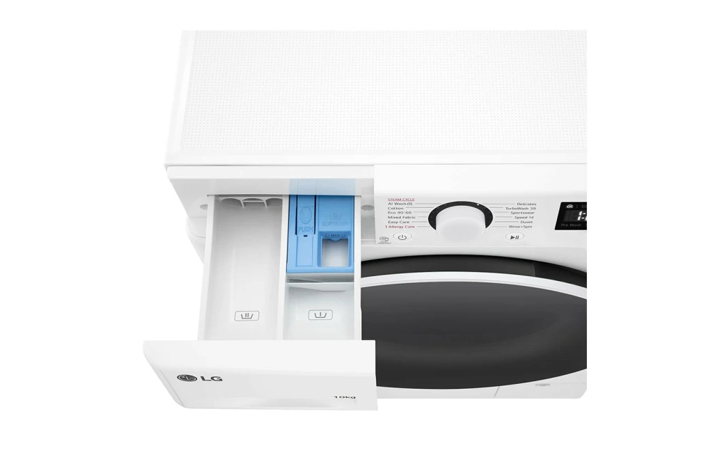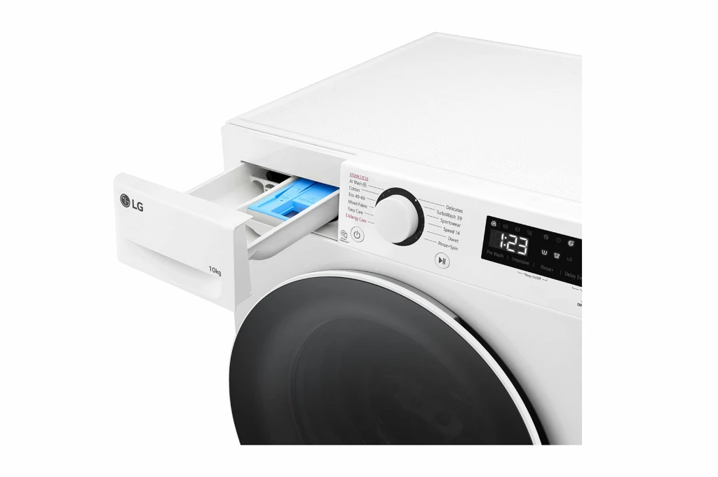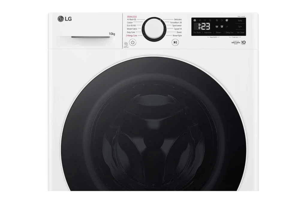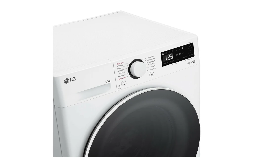 LG F4WR510S0W. Laadimistüüp: Eest täidetav. Nimitäitekogus: 10 kg, Tsentrifuugimise klass: A, Müratase (tsentrifuugimisel): 71 dB, Maksimaalne pöörlemiskiirus: 1400 RPM. Toote värv: Valge. Laius: 600 mm, Sügavus: 565 mm, Kõrgus: 850 mm. Energiatõhususe klass: A