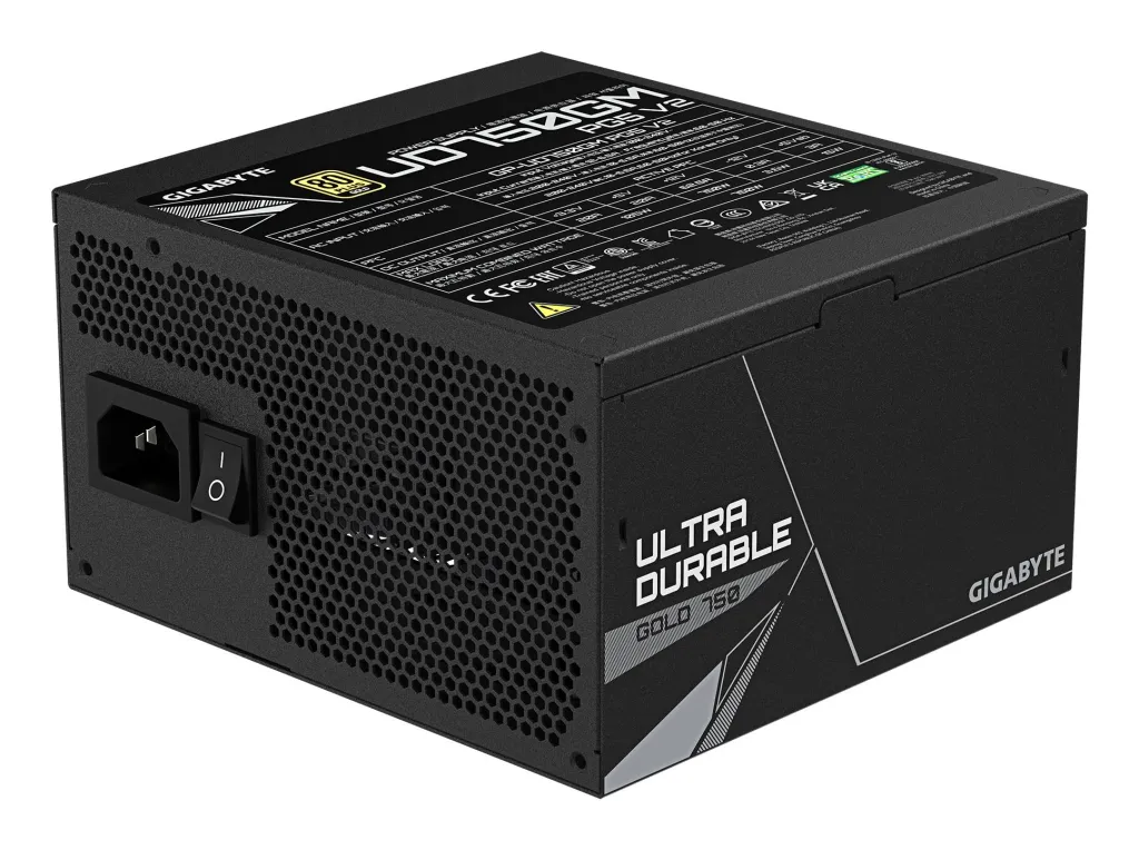 | Summary | GIGABYTE UD750GM PG5 V2 Power Supply Unit- PCIe Gen 5.1, 80 PLUS Gold, Fully Modular Design, 120mm Fan, ATX 3.1 compatible, EU Plug. Total power: 750 W, AC input voltage: 100 - 240 V, AC input frequency: 50/60 Hz. Motherboard power connector: 20+4 pin ATX, Motherboard power cable length: 61 cm, SATA power cable length: 150,600 mm. Purpose: PC, Power supply unit (PSU) form factor: ATX, 80 PLUS certification: 80 PLUS Gold. Product colour: Black, Cooling type: Active, Fan diameter: 12 cm. Width: 150 mm, Depth: 140 mm, Height: 86 mm |
