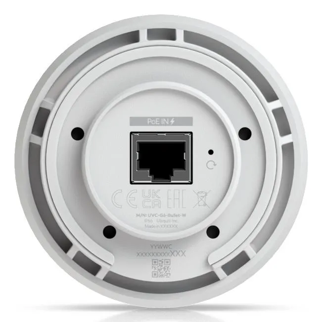 | Summary | Ubiquiti G6 Bullet. Type: IP security camera, Placement supported: Indoor & outdoor, Connectivity technology: Wired. Mounting type: Ceiling/Wall/Pole, Product colour: White, Form factor: Bullet. Lens viewing angle, horizontal: 109.9°, Lens viewing angle, vertical: 56.7°, Lens viewing angle, diagonal: 134.1°. Optical sensor size: 25.4 / 1.8 mm (1 / 1.8"). Night vision distance: 30 m, LED type: IR |