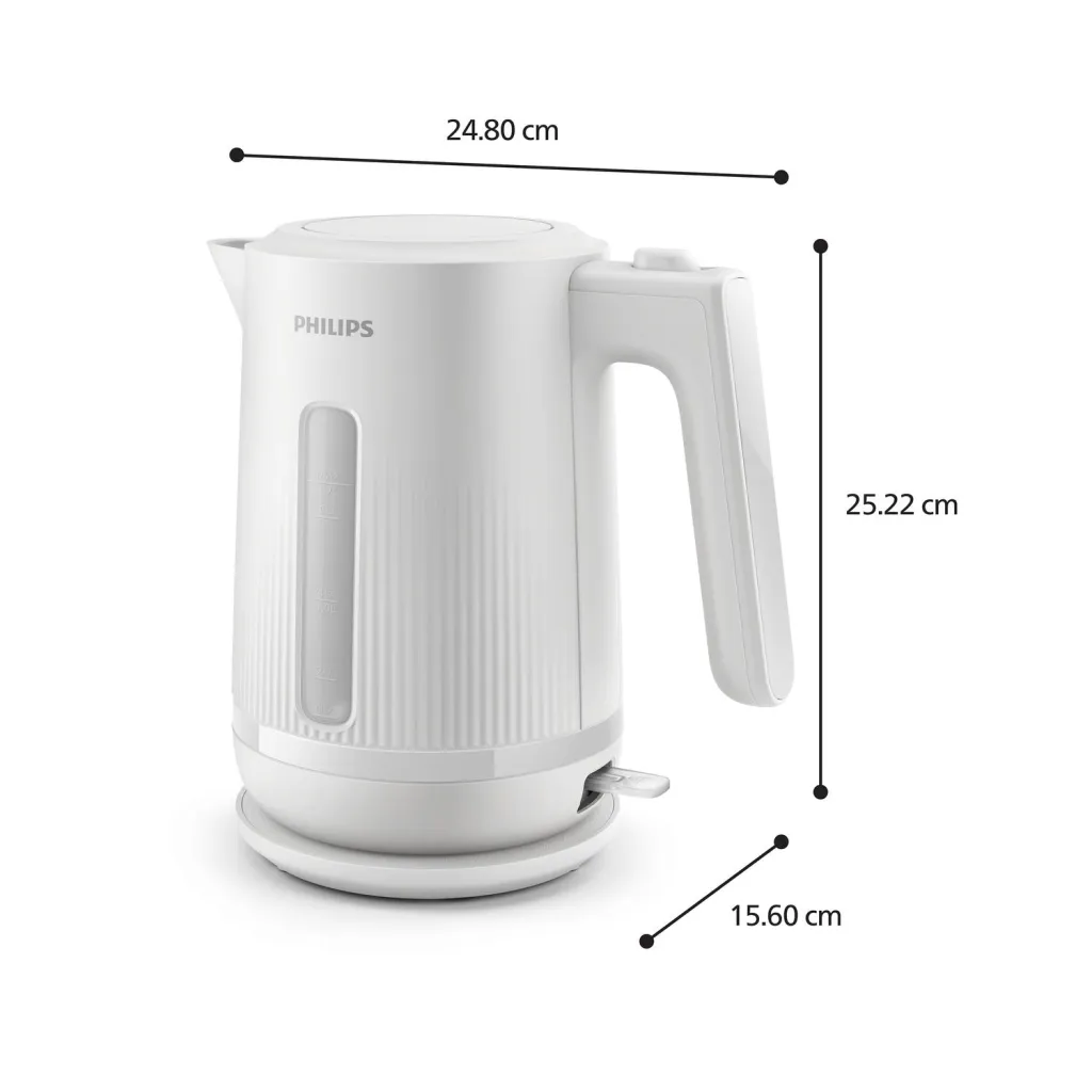 | Summary | Philips 3000 series Kettle. Water tank capacity: 1.7 L. Power: 2200 W. Product colour: White, Housing material: Plastic, Overheat protection. Cordless |