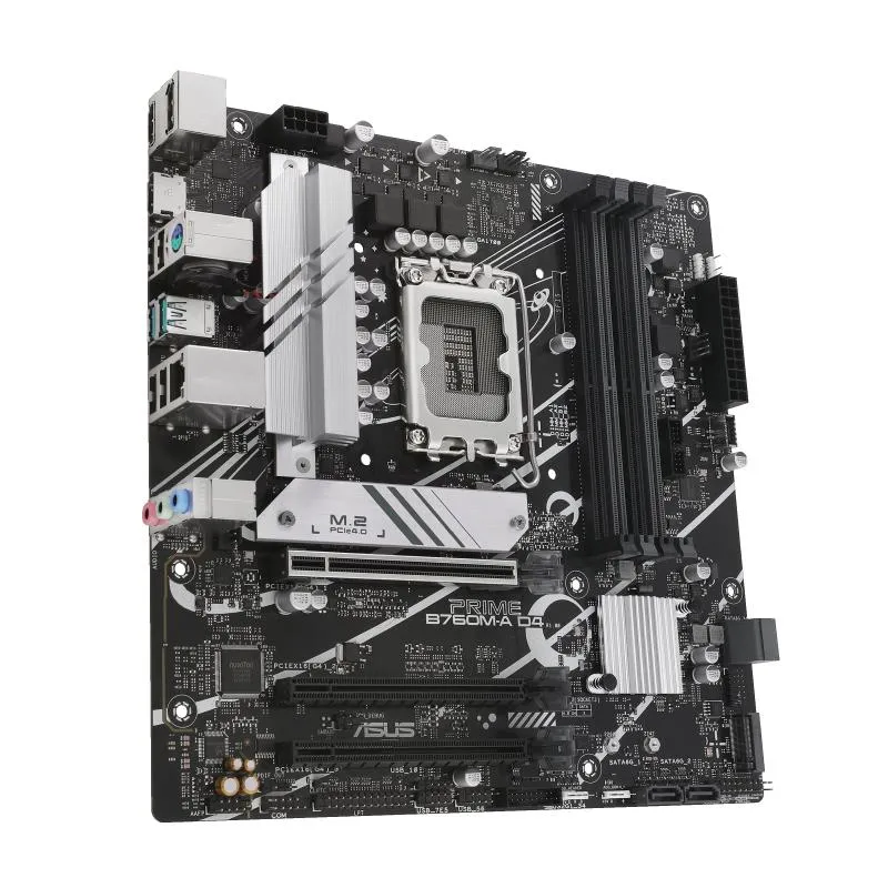 The PRIME B760 motherboard offers a total of two M.2 slots that support data-transfer speeds of up to 64 Gbps via PCIe 4.0, enabling quicker boot-up and app load times with OS or application drives.