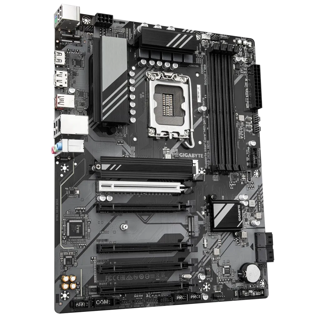 | Summary | GIGABYTE B760 DS3H GEN5 Motherboard - Supports Intel Core 14th Gen CPUs, 8+2+1 Phases Digital VRM, up to 5600MHz DDR5, 2xPCIe 4.0 M.2, 1GbE LAN, USB 3.2 Gen 2x2. Processor manufacturer: Intel, Processor socket: LGA 1700, Compatible processor series: Intel® Celeron®, Intel Core i3 12th Gen, Intel Core i3 13th Gen, Intel Core i3 14th Gen, Intel.... Supported memory types: DDR5-SDRAM, Maximum internal memory: 256 GB, Memory slots type: DIMM. Supported storage drive interfaces: M.2, PCI Express 4.0, SATA III, Supported storage drive types: HDD & SSD, RAID levels: 0, 1, 5, 10. Maximum resolution: 4096 x 2304 pixels. Ethernet interface type: Gigabit Ethernet, LAN controller: Realtek RTL8111H |
