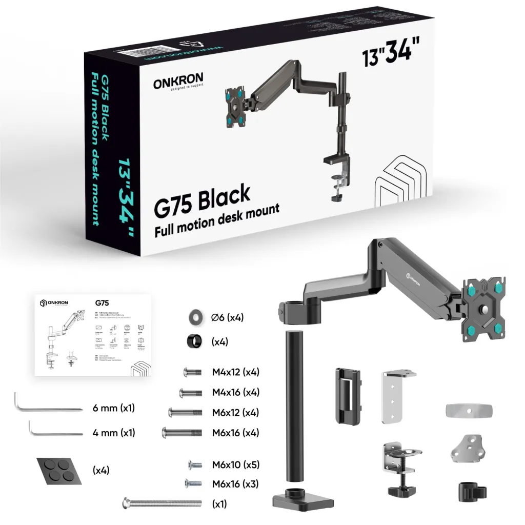 ONKRON Desk Mount for Monitor 13"- 34", tilt-swivel, with rotation, max 12 kg, VESA up to 100x100