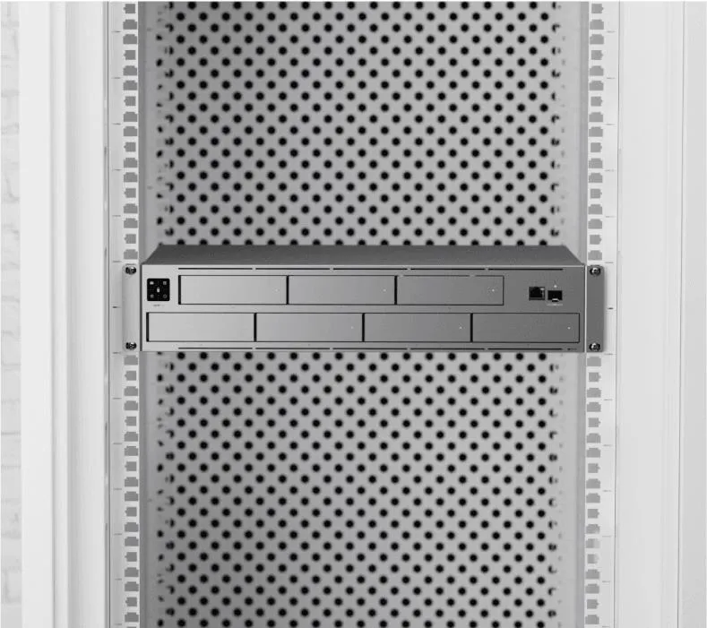 A 2U-sized video recorder with (7) 2.5/3.5" HDD bays that can provide up to 60 days of storage for (20) 4K cameras or (60) Full HD cameras.