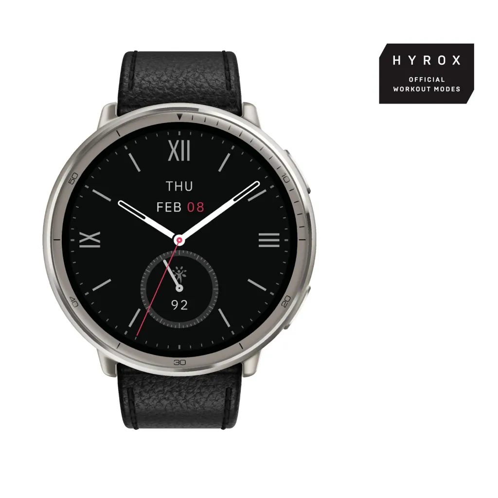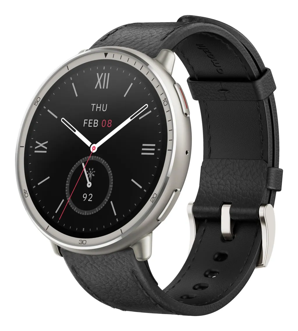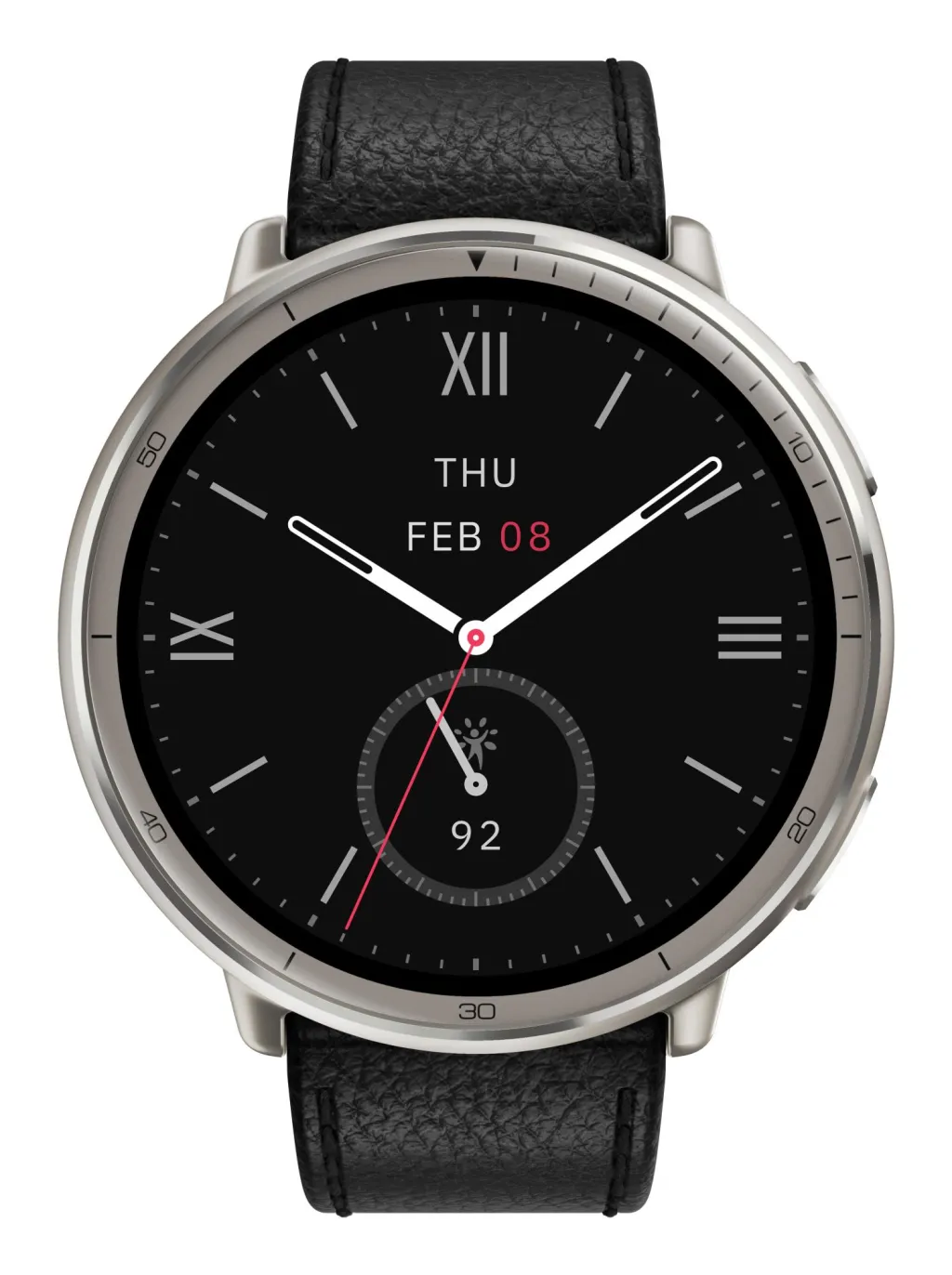 | Summary | Amazfit W2433EU1N. Display diagonal: 3.35 cm (1.32"), Display technology: AMOLED, Display resolution: 466 x 466 pixels, Touchscreen. Battery capacity: 270 mAh. Weight: 29.5 g. Band material: Leather, Band colour: Black. Operating system installed: Zepp OS |