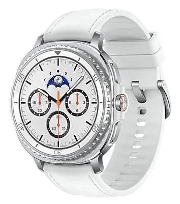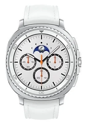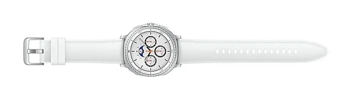 | Summary | Samsung Galaxy Watch 8 Classic. Display diagonal: 3.3 cm (1.3"), Display technology: AMOLED, Display resolution: 438 x 438 pixels, Touchscreen. RAM capacity: 2000 MB, Flash memory: 64 GB. Wi-Fi. GPS (satellite). Battery capacity: 445 mAh. Weight: 63.5 g. Band colour: White. Operating system installed: Wear OS |