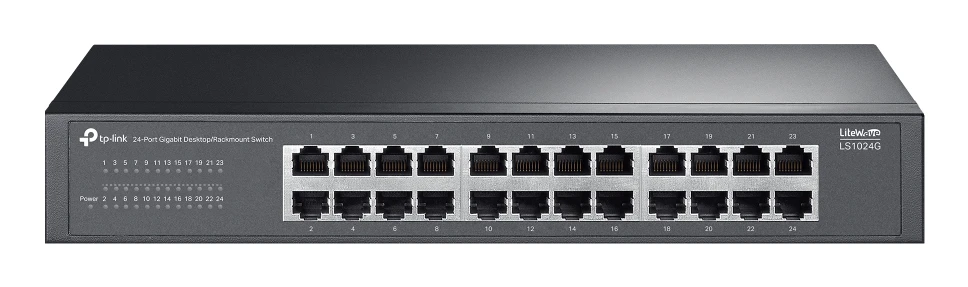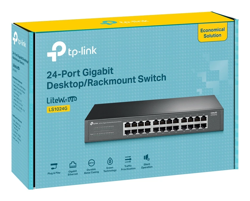 TP-Link LS1024G. Lüliti tüüp: Mittejuhitav. RJ-45 Etherneti ühenduse pesade tüüp: Gigabit Ethernet (10/100/1000), RJ-45 Etherneti ühenduse pesade arv: 24. MAC-aadresside tabel: 8000 sisestust, Lülitusvõime: 48 Gbit/s. Võrgustandardid: IEEE 802.3, IEEE 802.3ab, IEEE 802.3i, IEEE 802.3p, IEEE 802.3u, IEEE 802.3x