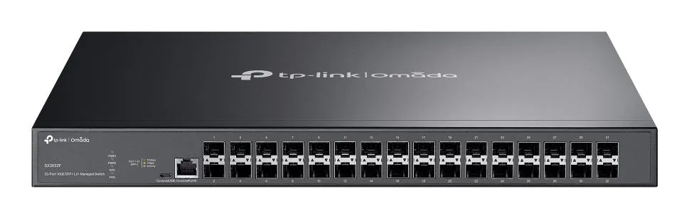 TP-Link Omada SX3032F. Lüliti tüüp: Juhitav, Lüliti kiht: L2+. RJ-45 Etherneti ühenduse pesade arv: 1, Installitud SFP+ moodulite hulk: 32, Konsooli port: RJ-45/Micro-USB. MAC-aadresside tabel: 32000 sisestust, Lülitusvõime: 640 Gbit/s. Võrgustandardid: IEEE 802.1Q, IEEE 802.1ab, IEEE 802.1p, IEEE 802.1x, IEEE 802.3ah, IEEE 802.3x. Püstikmontaaž