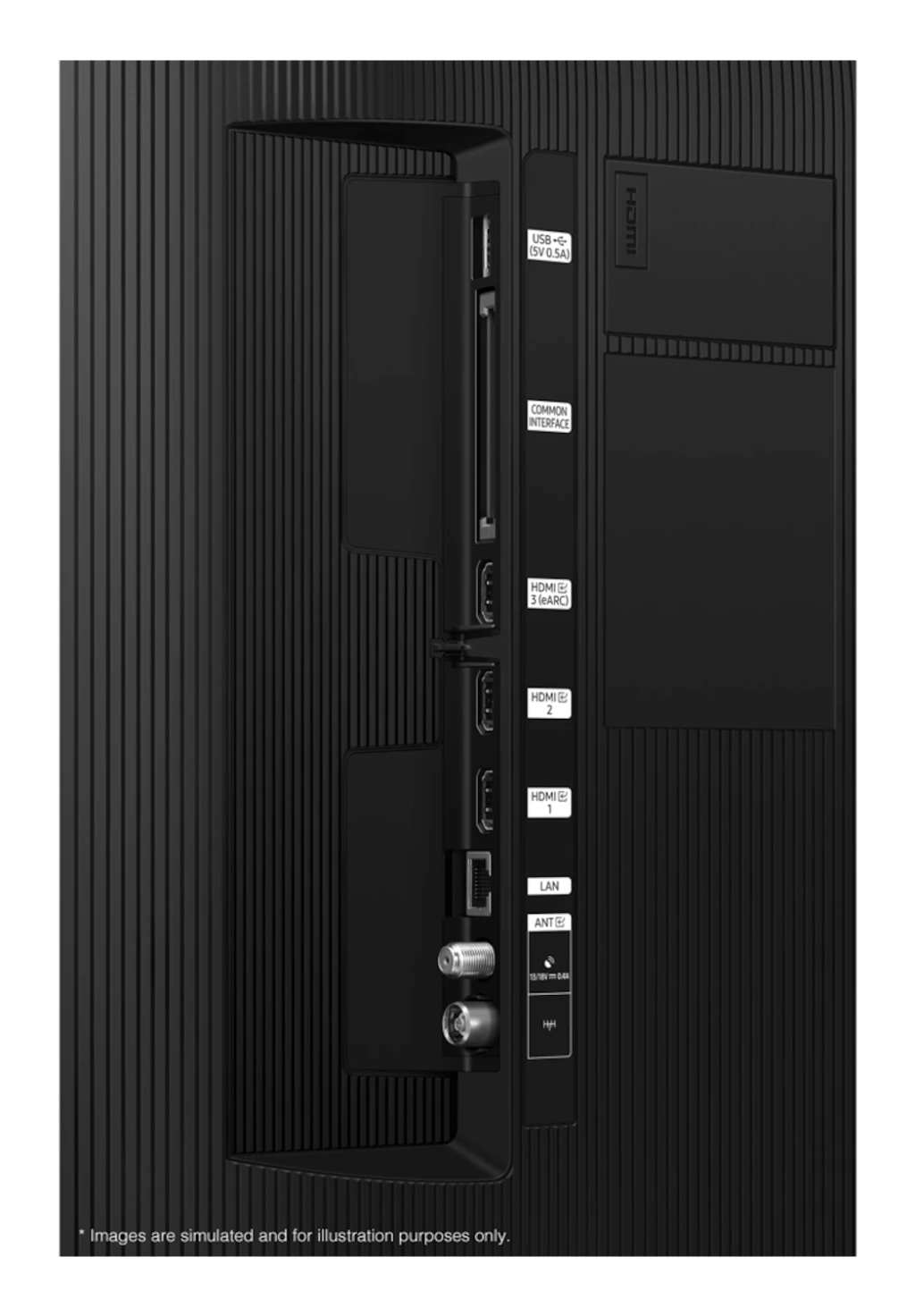 Samsungi tehnoloogiad (AV/TV) | 4K Upscaling, AI Auto Game Mode, Adaptive Sound, Art Store, Built-in SmartThings Hub, Contrast Enhancer, Micro Dimming, Motion Xcelerator, Object Tracking Sound Lite, Q-Symphony, Q4 AI protsessor, Quantum HDR, Samsung Health, Smart Calibration |