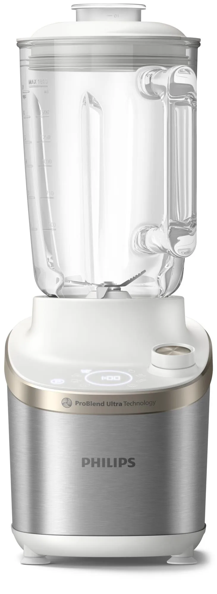 | Summary | Philips 7000 series HR3760/01. Type: Tabletop blender, Product colour: Stainless steel, White, Cord length: 1 m. Bowl capacity: 2 L, Rotational speed (max): 22000 RPM, Control type: Rotary, Touch. Blending bowl material: Glass, Housing material: Metal, Blade material: Stainless steel. Power: 1500 W, Power source: AC, AC input voltage: 230 V. Width: 167 mm, Depth: 216 mm, Height: 442 mm |