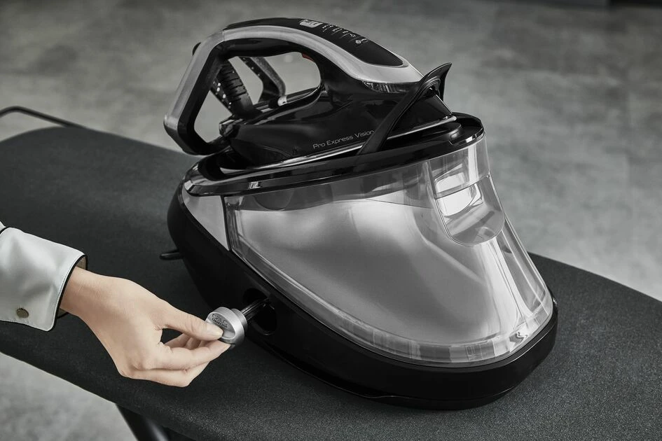 Tefal Pro Express Vision GV9821. Triikimisvõimsus: 3000 W, Aurujoa võimekus: 800 g/min, Talla tüüp: Durilium AirGlide Autoclean soleplate. Juhtme pikkus: 1,6 m. Laius: 245 mm, Sügavus: 415 mm, Kõrgus: 296 mm. Tooteid kaubaaluse kihi kohta: 6 tk, Kogus pakis: 1 tk, Kihid kaubaaluse kohta: 3 tk. Võimsus: 3000 W, Päritoluriik: Prantsusmaa
