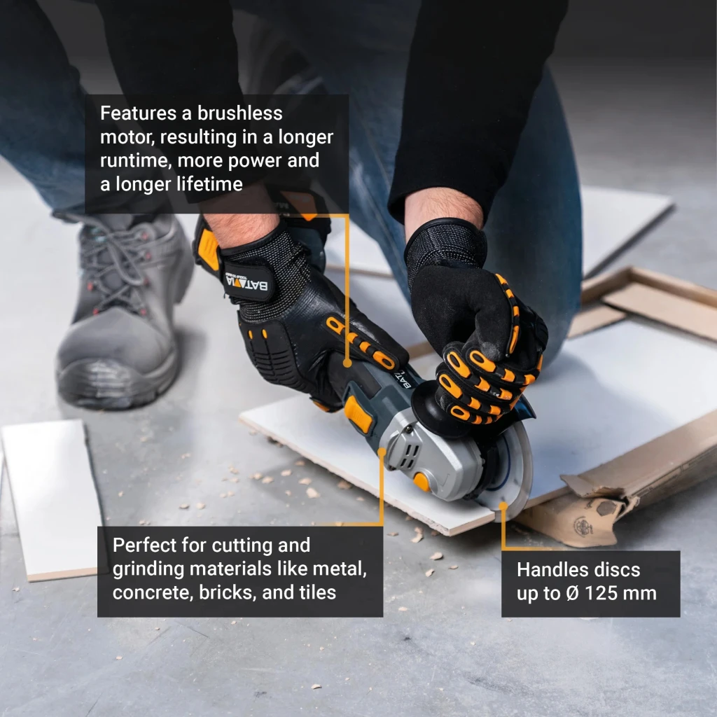 Brushless power for tough cutting and grinding tasks on metal, concrete, and tiles; Switch between three digital speed settings for precise control; Less downtime with toolless disc changes and quick-release safety guard
