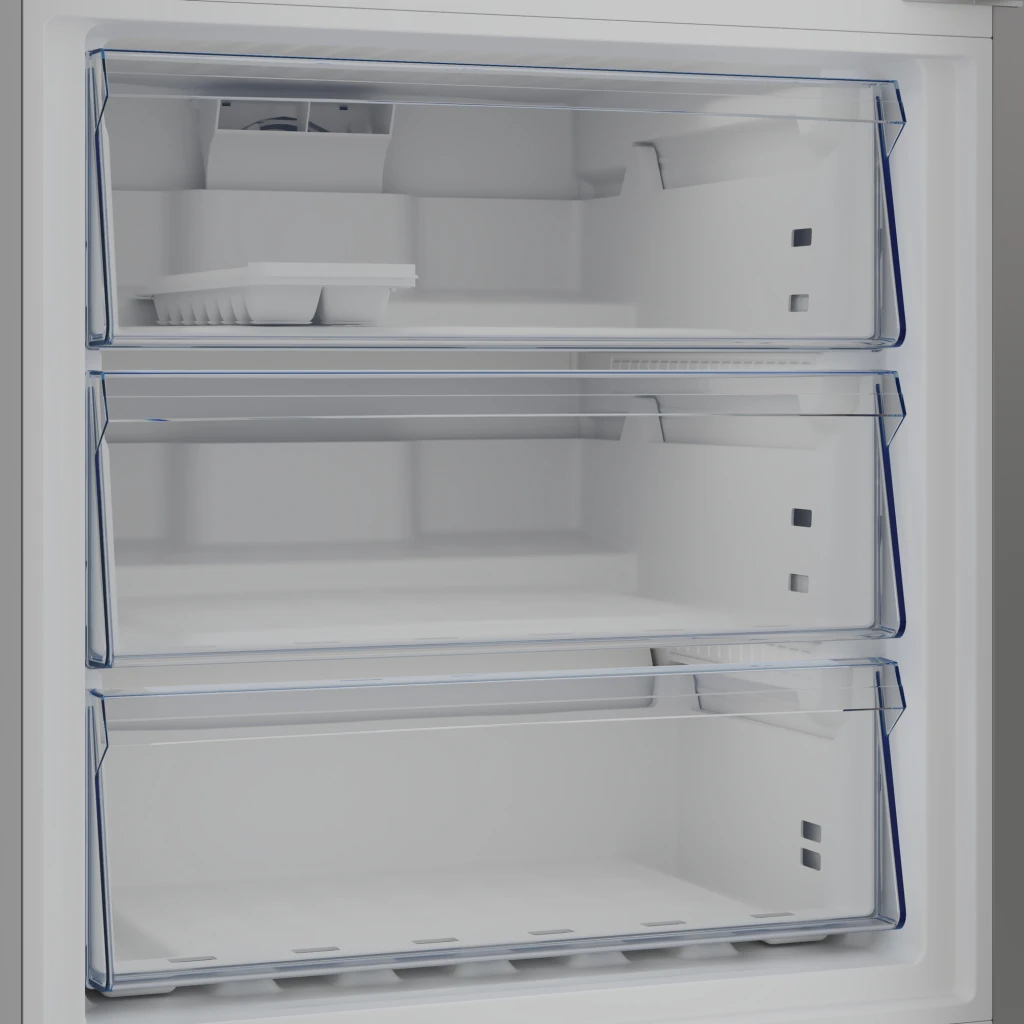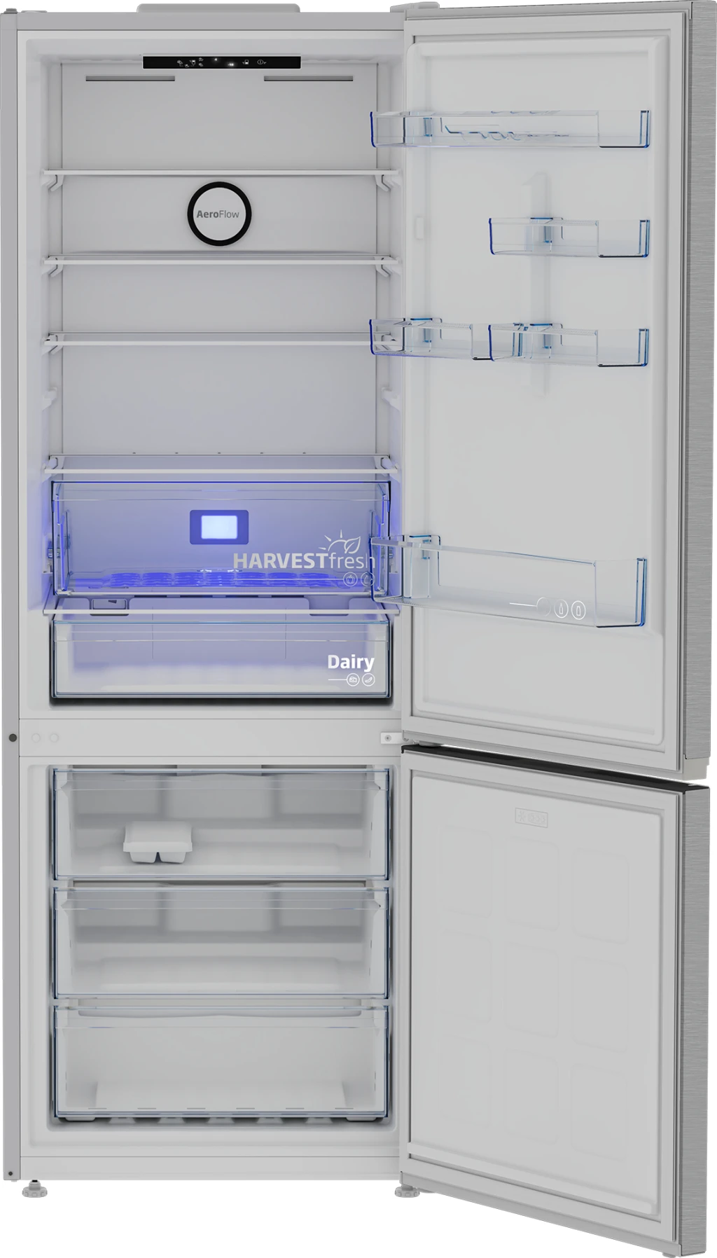 Beko B3RCNE564HXB. Neto kogumahutavus: 490 l. Ukse hing: Parem, Kuvamise tüüp: LED. Kliimaklass: Kliimaklass SN-T, Müratase: 38 dB. Külmkapi netomahutavus: 340 l, Jäävaba (külmik), Multi-õhuvool (külmik). Sügavkülmiku netomahutavus: 150 l, Külmutusvõimsus: 7,8 kg/24 h, Jäävaba (sügavkülmik). Värske säilituse sektsioon. Energiatõhususe klass: E, Aastane energiakulu: 295 kWh. Toote värv: Hõbe