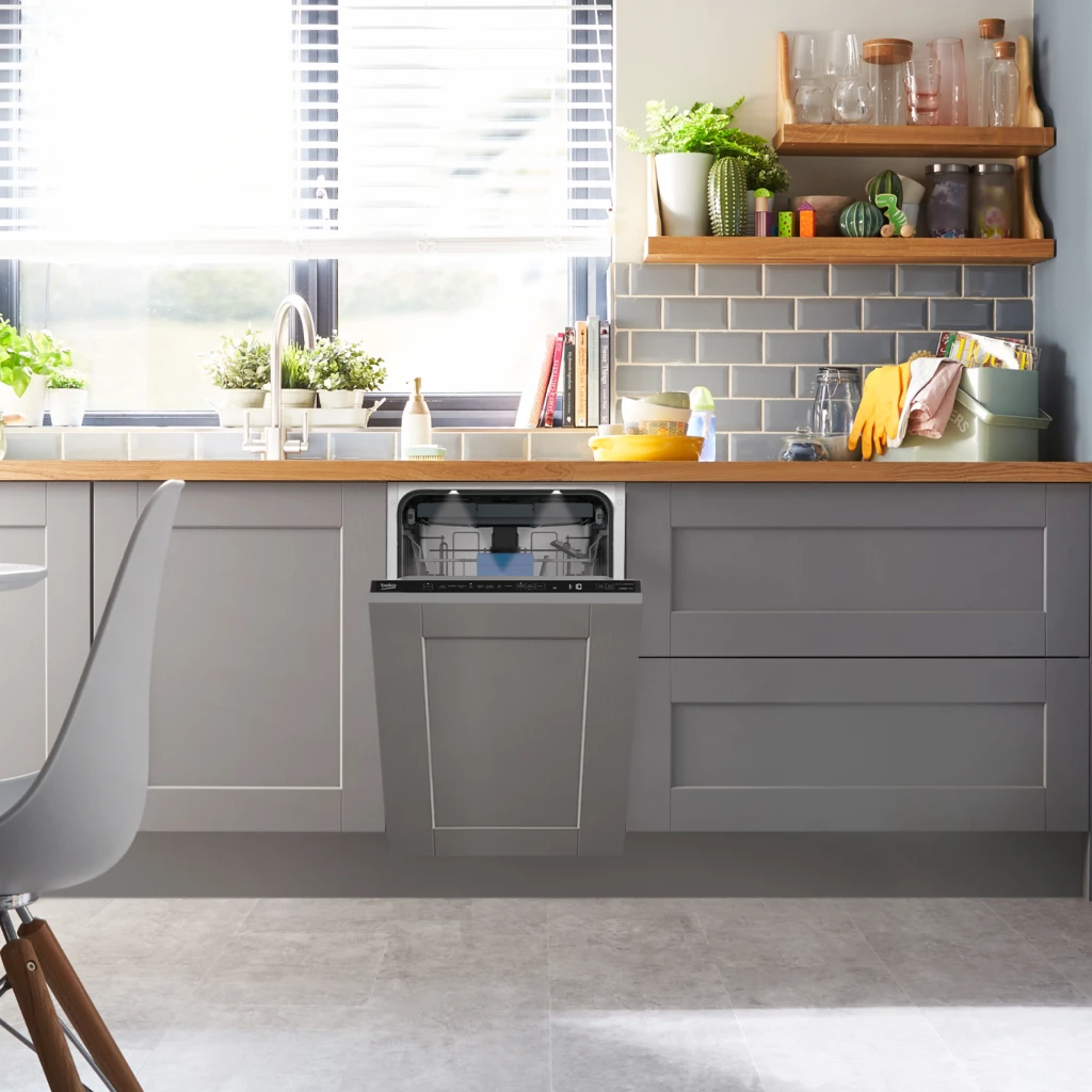 Beko BDIS38040Q. Seadme paigaldus: Täielikult sisseehitatud, Toote suurus: Kitsas (45 cm), Kontrolli tüüp: Puudutus. Asetuste arv: 10 kohta, Müraemissiooni klass: C, Müratase: 45 dB. Jalgade reguleerimine: 10 cm. Energiatõhususe klass: C, Veekulu tsükli kohta: 8,9 l, Energiatarve 100 tsükli kohta: 59 kWh. Laius: 448 mm, Sügavus: 550 mm, Kõrgus: 818 mm