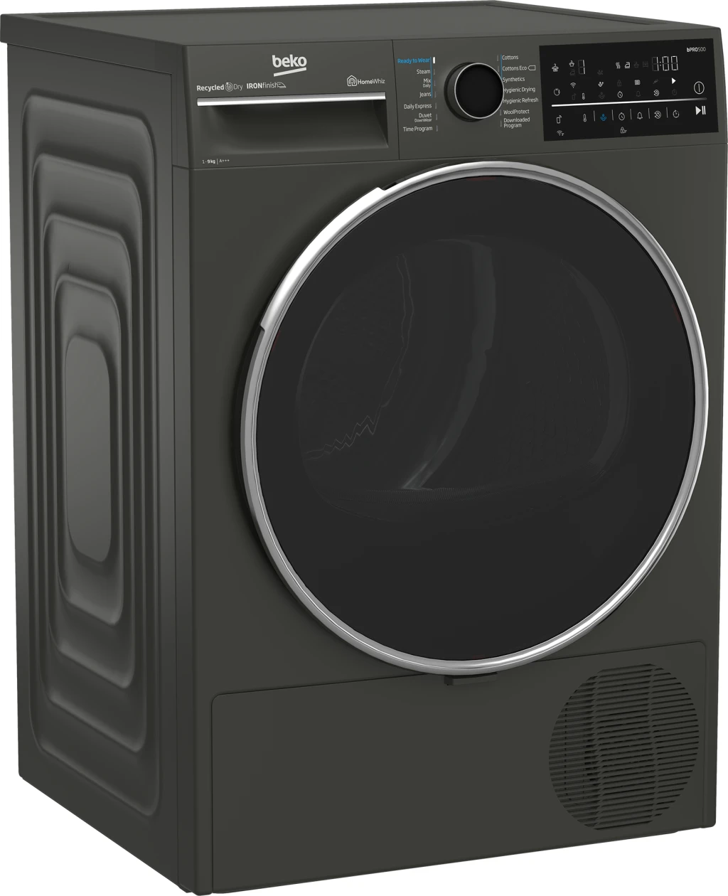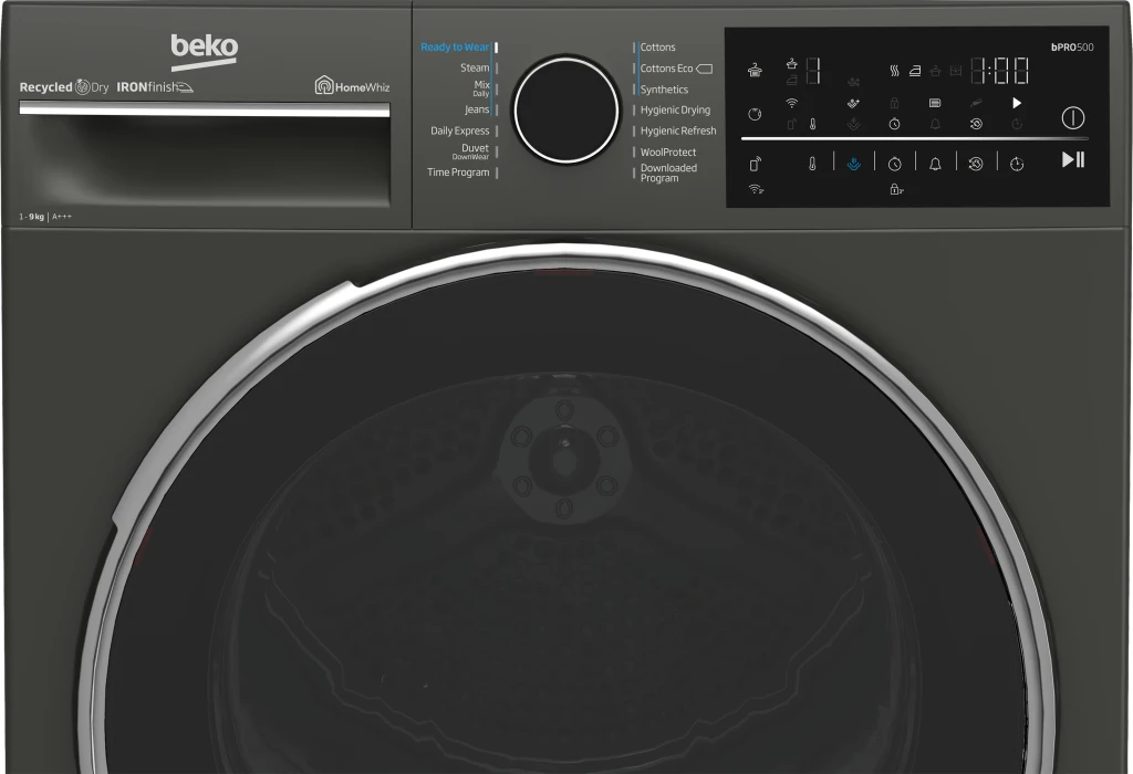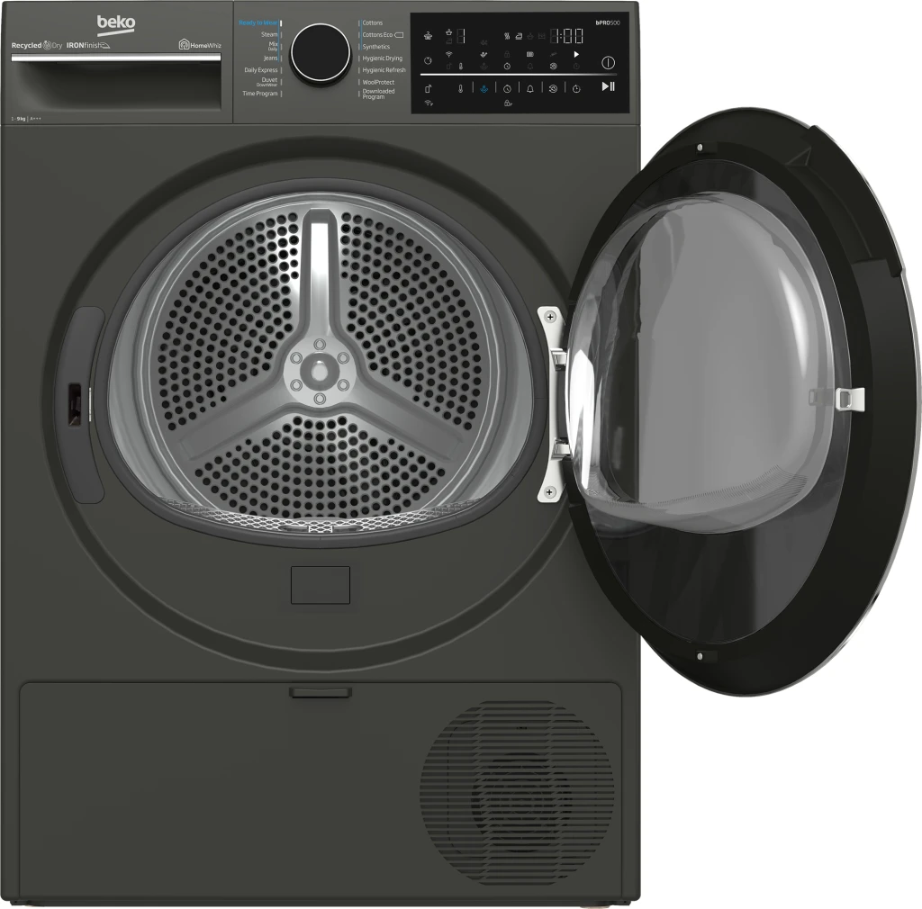 Beko B5T89243M. Seadme paigaldus: Eraldiseisev, Laadimistüüp: Eest täidetav, Kuivatussüsteem: Kuumapump. Nimitäitekogus: 9 kg, Condensation efficiency class (old): A, Kondensatsiooni tõhususe klass: B. Energiatõhususe klass: C, Aastane energiakulu: 1,1 kWh, Kuumuse allikas: Elektriline. Sügavus: 672 mm, Laius: 598 mm, Kõrgus: 846 mm. Energiatõhususe klass (vana): A+++