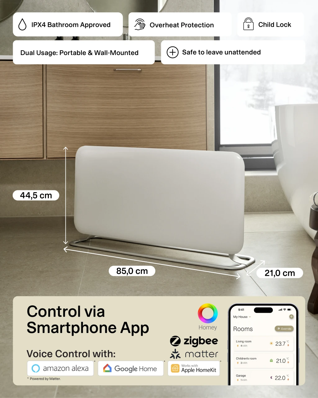 Comfortable Warmth (Heats the whole room), Energy Efficient (save up to 30%), Mill PID Wattage Tech, Mill Predictive Heating, Smart App Control; Overheat Protection; Child Lock