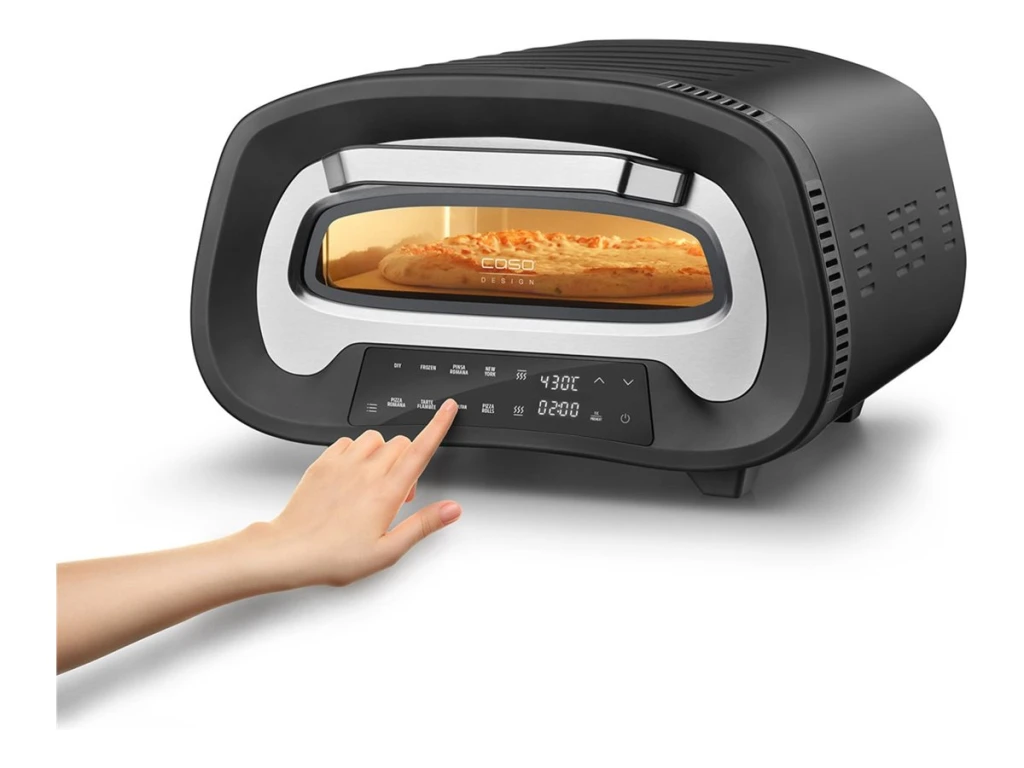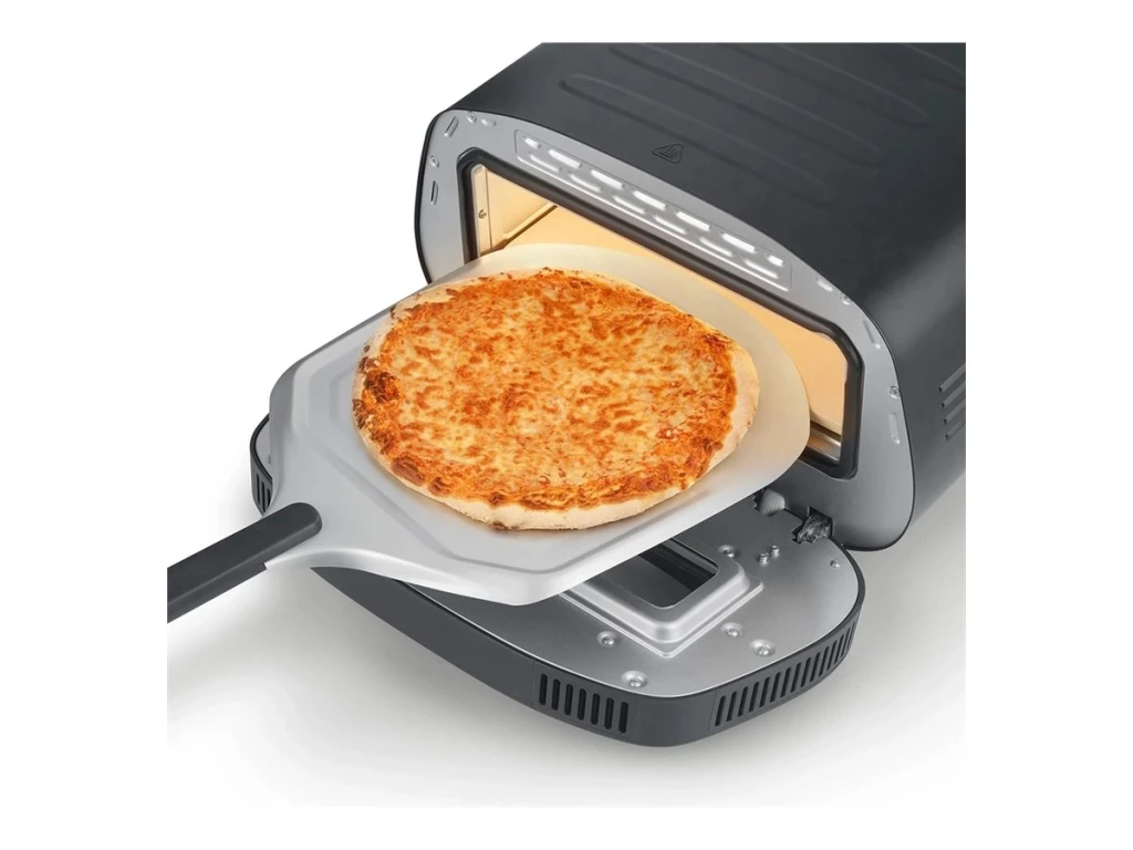 Individually selectable heating elements (top or bottom heat) ensure the perfect pizza with a crispy base and juicy topping; Simple operation thanks to digital display and sensor touch control with various pizza programmes; Includes high-quality and fast-heating large pizza stone made of cordierite; Safe and heat-resistant steel housing; 8 automatic programs for Pinsa Romana, New York Style, Flammkuchen, and more