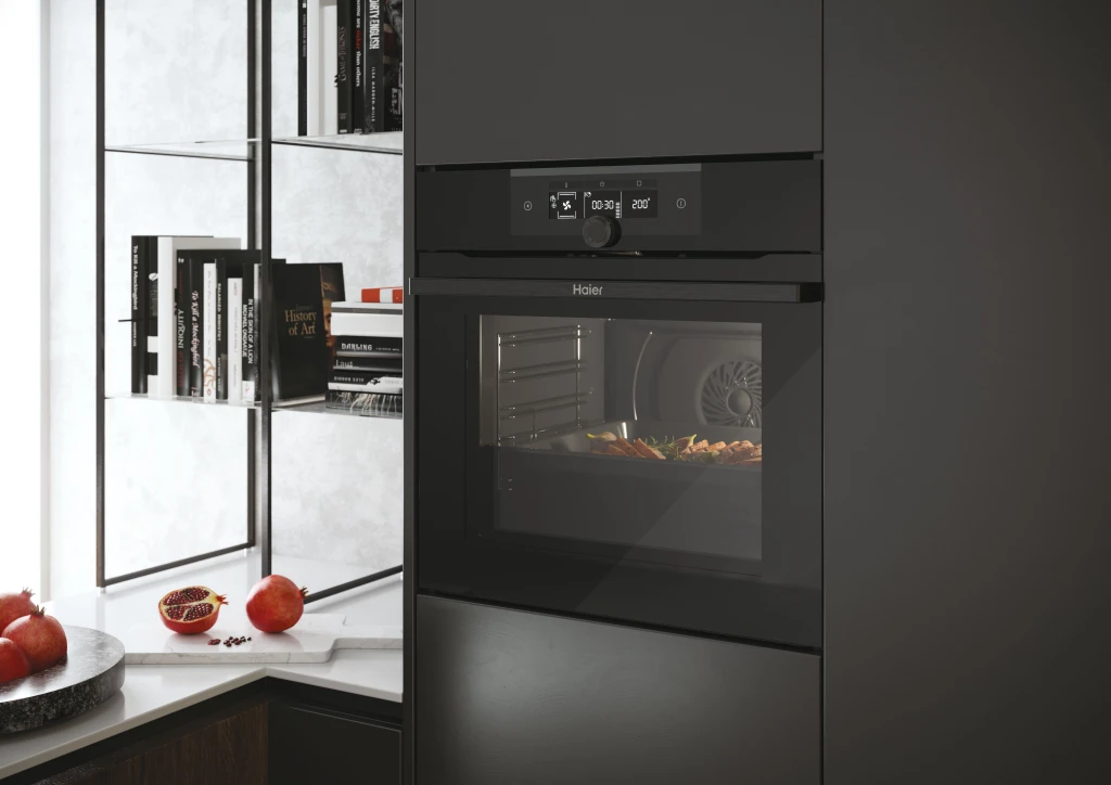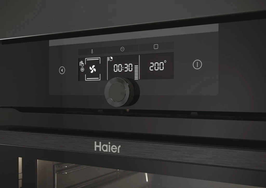 Haier I-Turn Series 2 HWO60SM2F3BH. Ahju tüüp: Elektriahi, Ahju(de) sisemahutavus kokku: 70 l, Ahju netovõimsus: 70 l. Seadme paigaldus: Sisseehitatud, Toote värv: Must, Kontrolli tüüp: Pöörlev, Puudutus. Juhtrakenduste tugi: hOn. Energiakulu (tavaline): 1,1 kWh, Energiakulu (sundkonvektsioon): 0,68 kWh, Energiatõhususe skaala: A+++ kuni D. Paigalduskoha laius: 56 cm, Paigalduskoha sügavus: 56,1 cm, Paigalduskoha kõrgus: 59 cm
