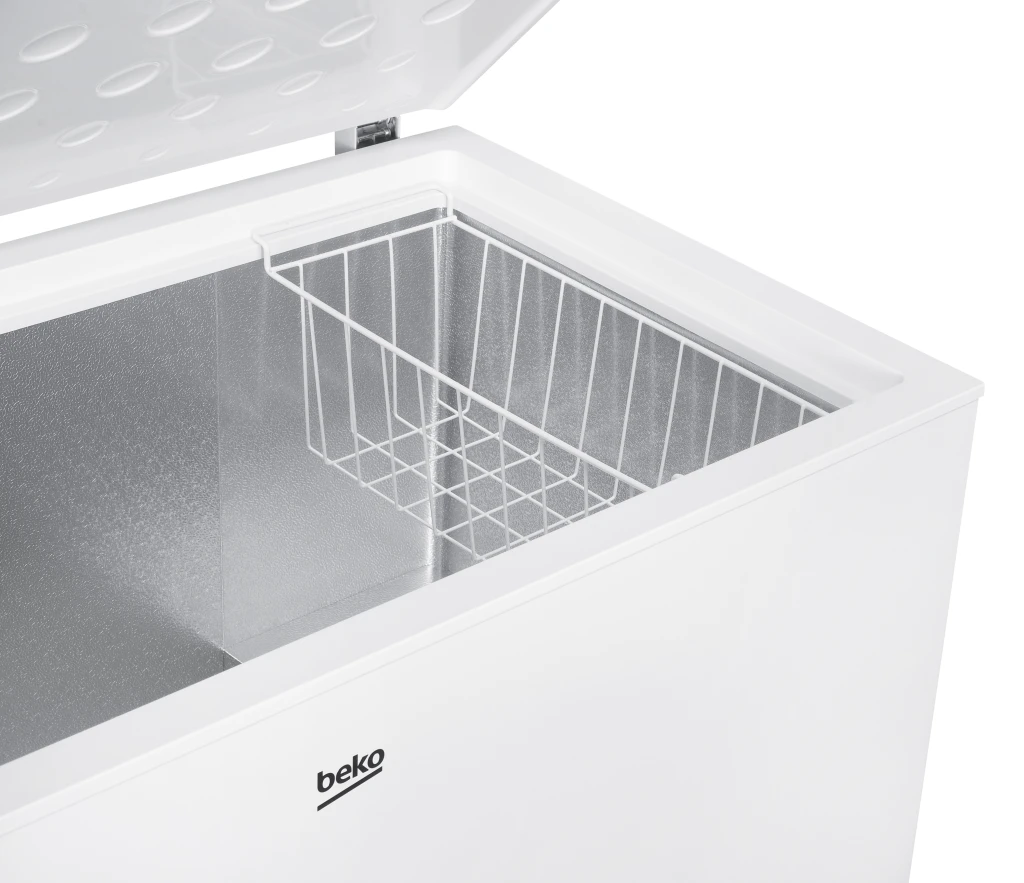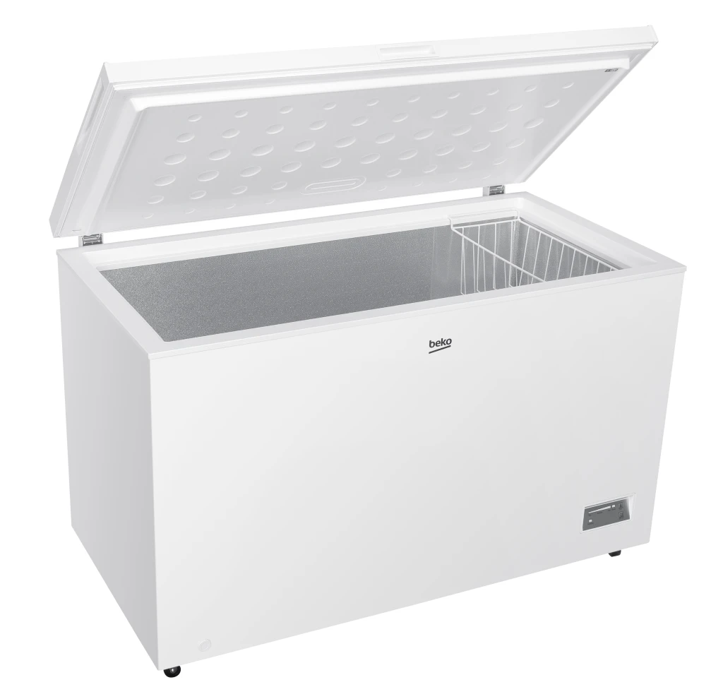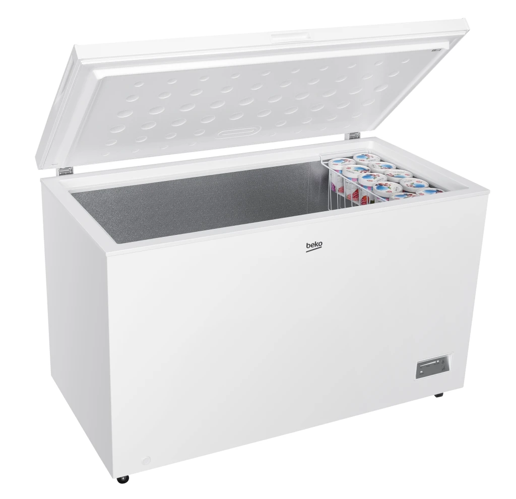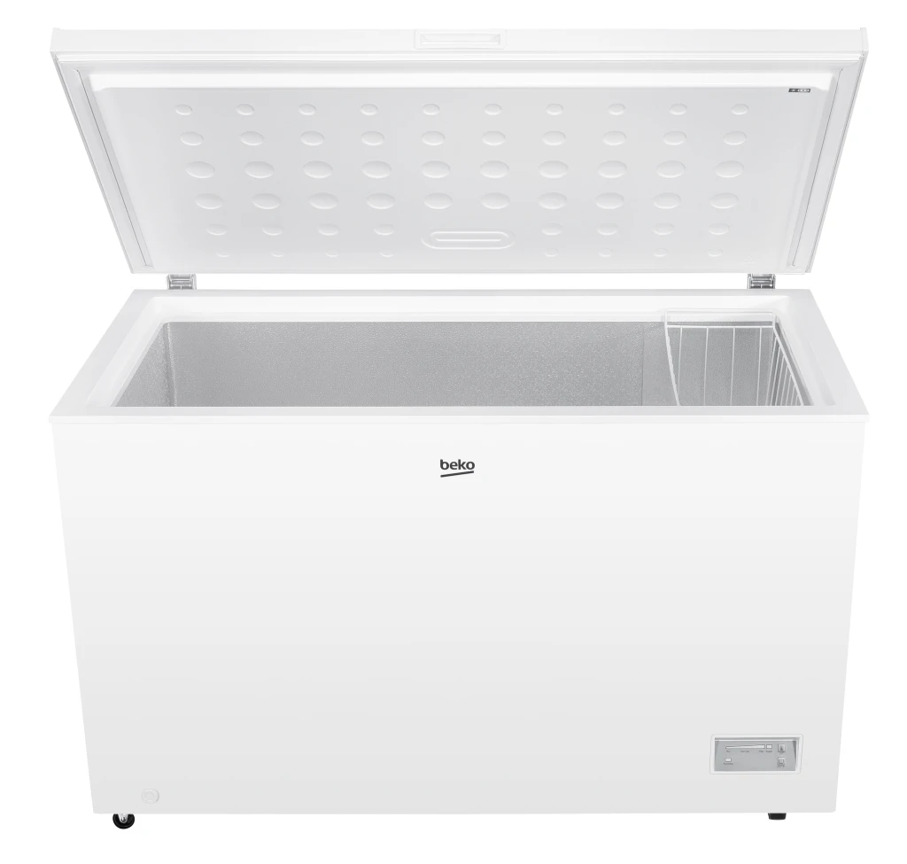 Beko CF380EWN. Sügavkülmiku netomahutavus: 371 l, Külmutusvõimsus: 18 kg/24 h, Müratase: 40 dB, Hinnang: 4*. Ukse hing: Üleval. Energiatõhususe klass: E, Aastane energiakulu: 254 kWh. Toote värv: Valge